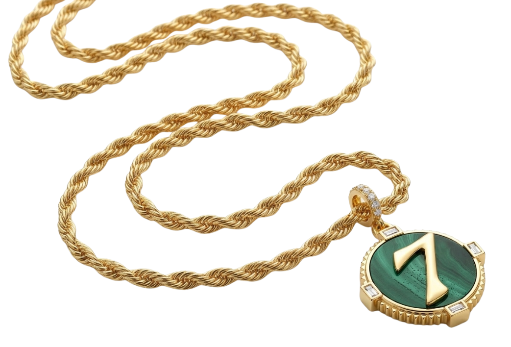 Number 7 has long been a symbol of luck, intuition, and spiritual alignment. Set against rich green malachite and luminous gold, this pendant is designed to carry meaning, attract good fortune, and bring a little magic to your everyday jewellery stack.