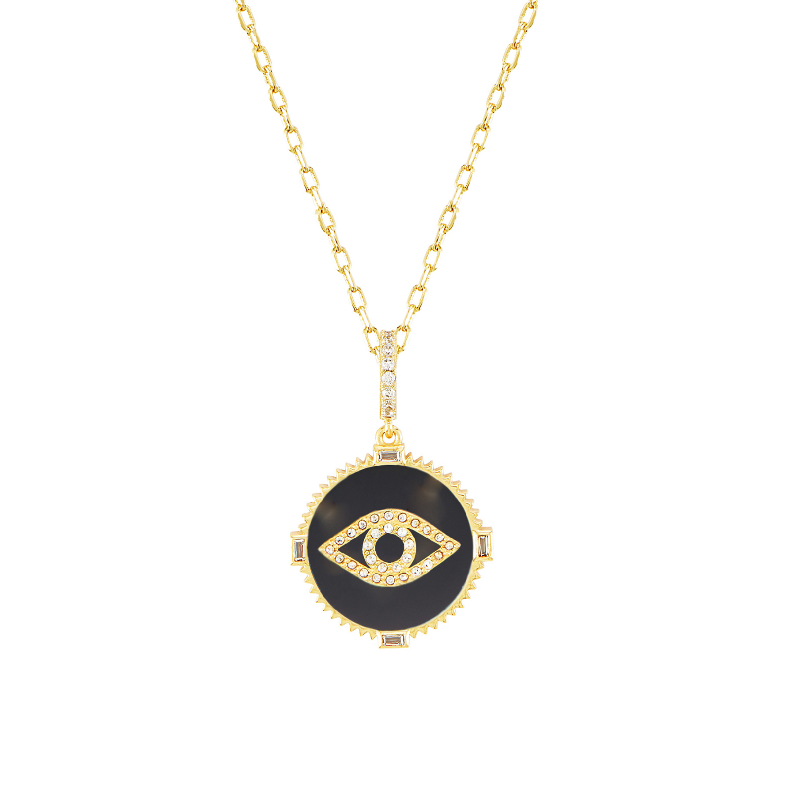 - Delicate necklace design, with black onyx pendant and crystal evil eye detail