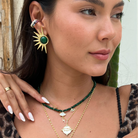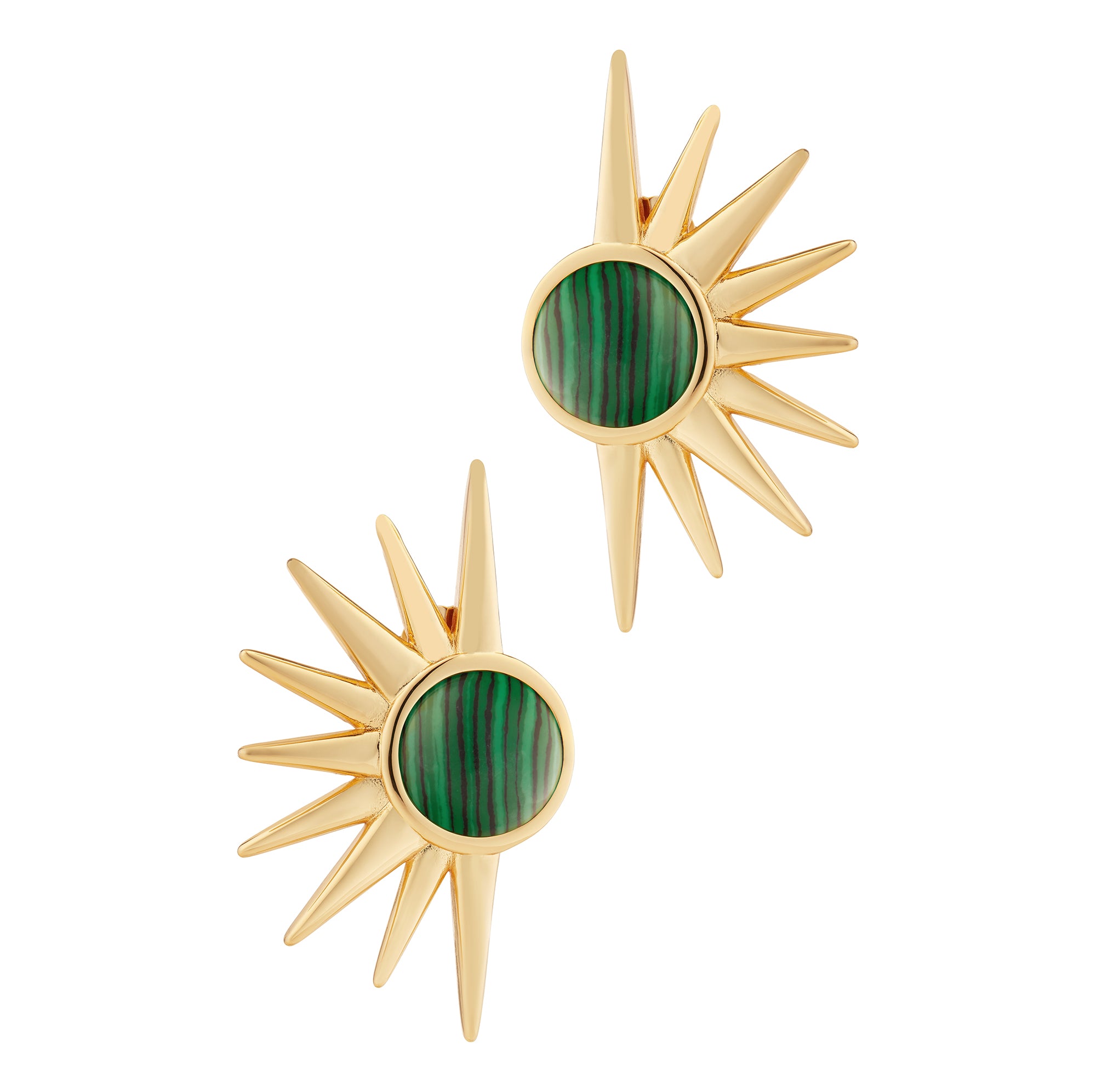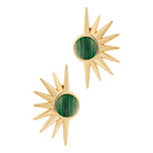 Let the 'Mystical Sun' earrings cast a joyful spell on your everyday look. The half sun design and faux malachite stone possess a unique mystical charm that will have you reaching for the stars! Every time you wear them, you will shine with the ethereal power of the universe.