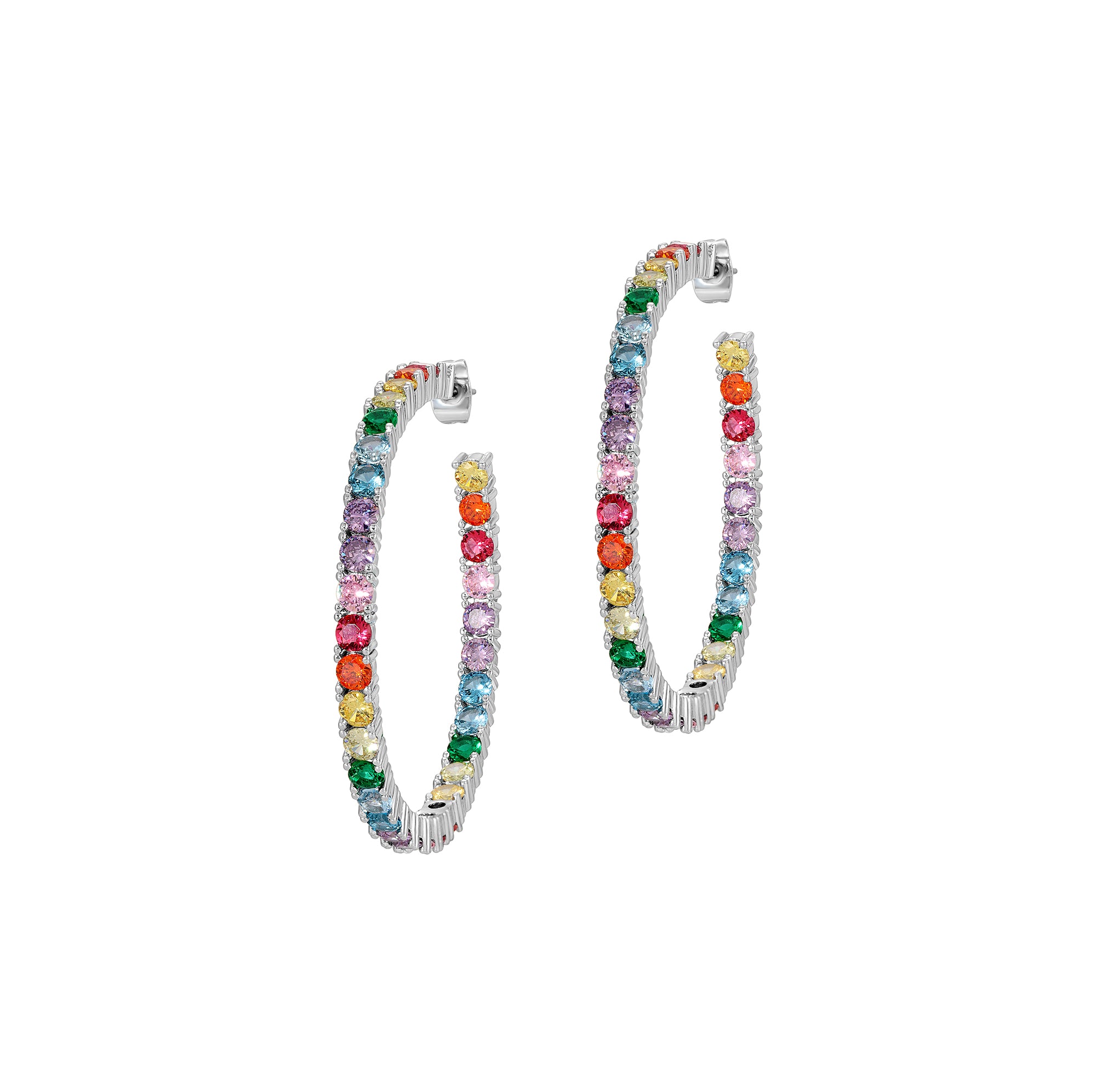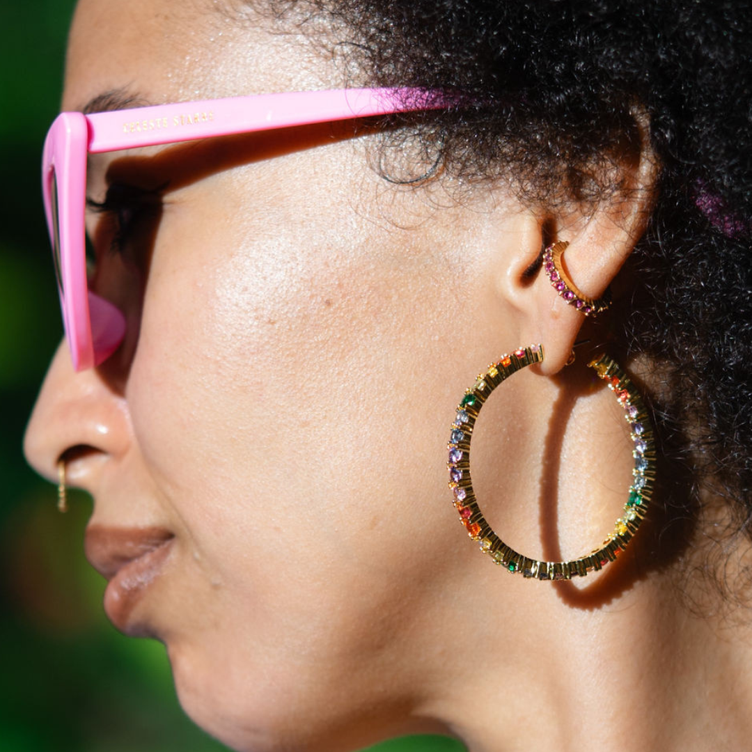- Hoop earrings with multi-coloured stone details