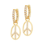 - Huggie earrings with peace charm and crystal detailing