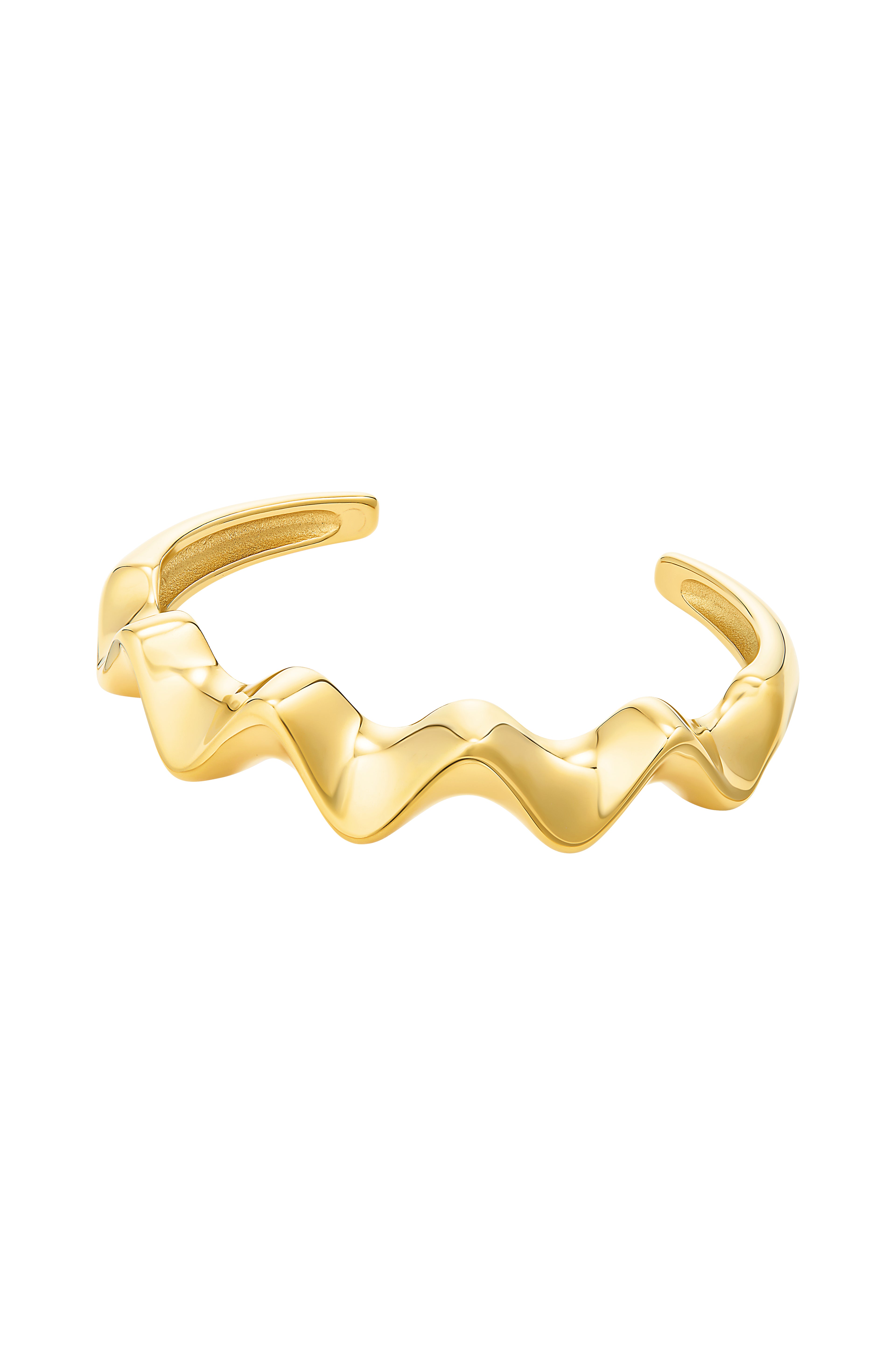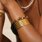 Sculpted to stand out. The Manly is your go-to for bold, fluid curves and golden attitude. With its undulating wave design and chunky silhouette, this cuff brings serious main character energy to your wrist stack.