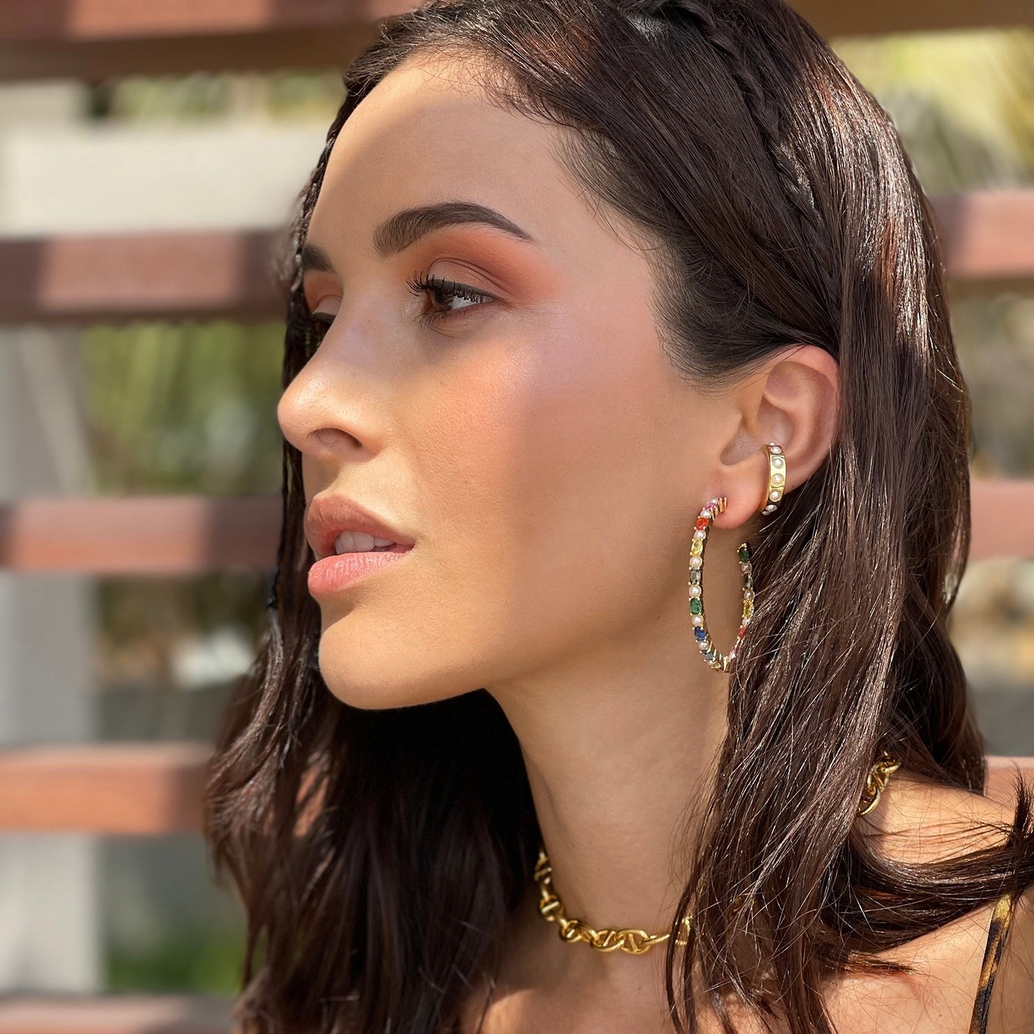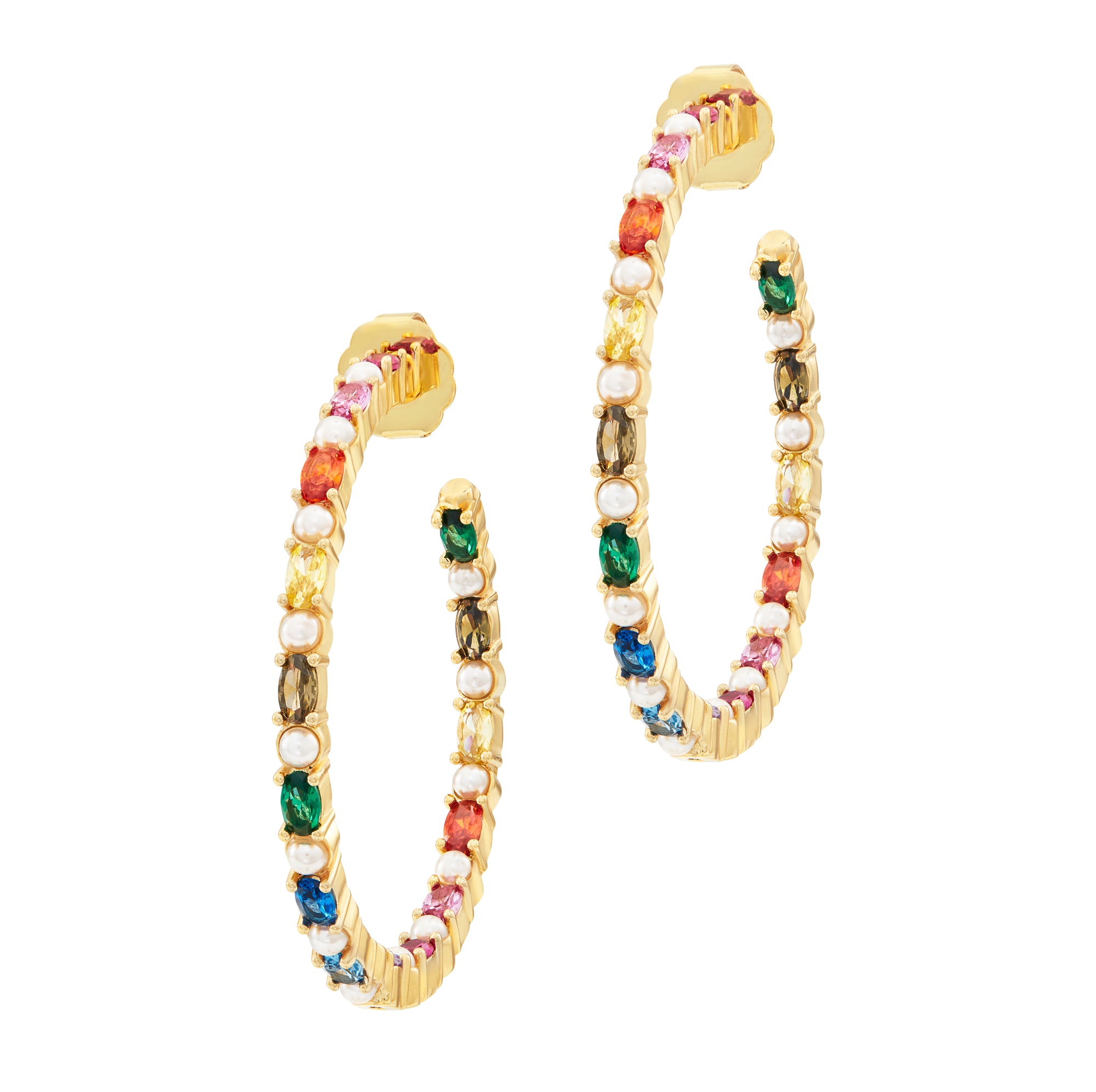 Perfect for when you're dreaming of the beach, our 'Tahitian Rainbow' earrings will brighten up your day.The combination of pearls and colourful stones will draw you in and leave you feeling fabulous. Wear them to dress up a simple day look or to compliment your best dress on a Summer's evening. Stack with your favourite ear cuffs, such as 'The Jenna' and 'The St Moritz' for the ultimate Celeste Starre line-up.