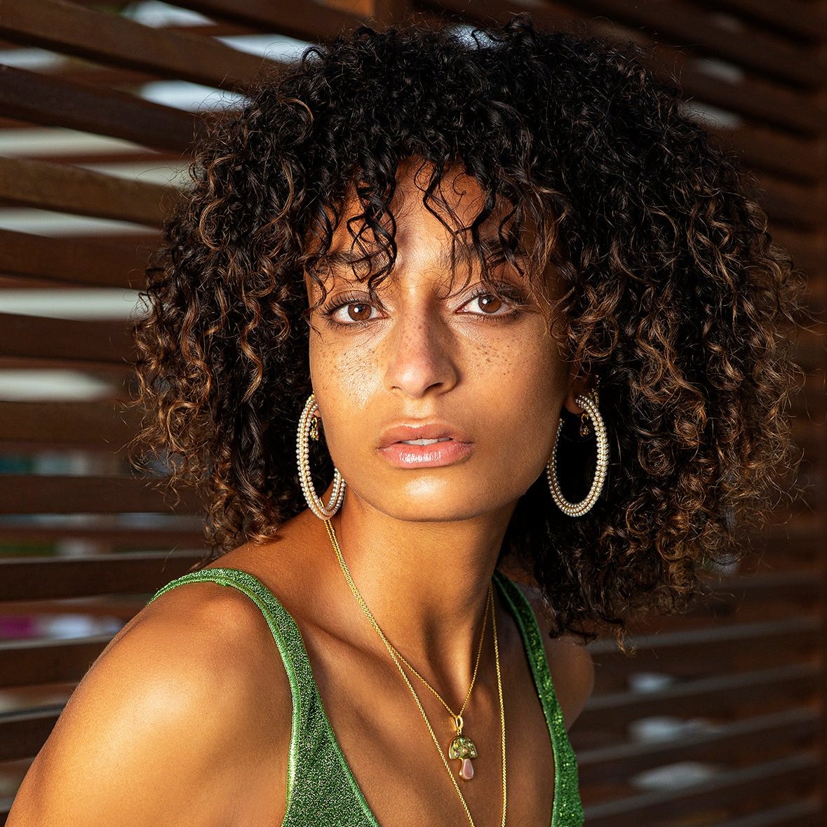 - Large hoop earrings with pearl details