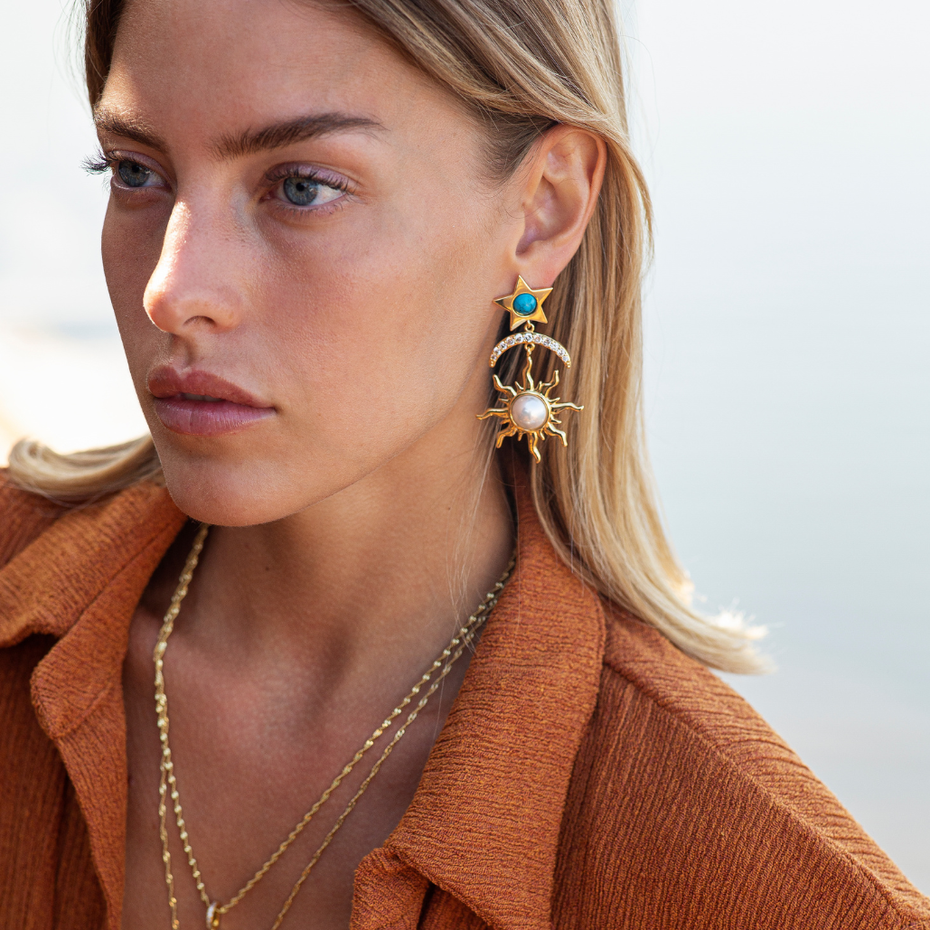 Your beauty will be unmatched whenever you wear our 'Cassiopeia' earrings. The ultimate statement pair, you will shine as bright as the sun and stars with these by your side. Perfectly worn alone or with your best Celeste Starre necklace - the 'Palm Springs', perhaps? - 'The Cassiopeia' are truly something to boast about, and you will find yourself reaching for them every time you head out of the door.