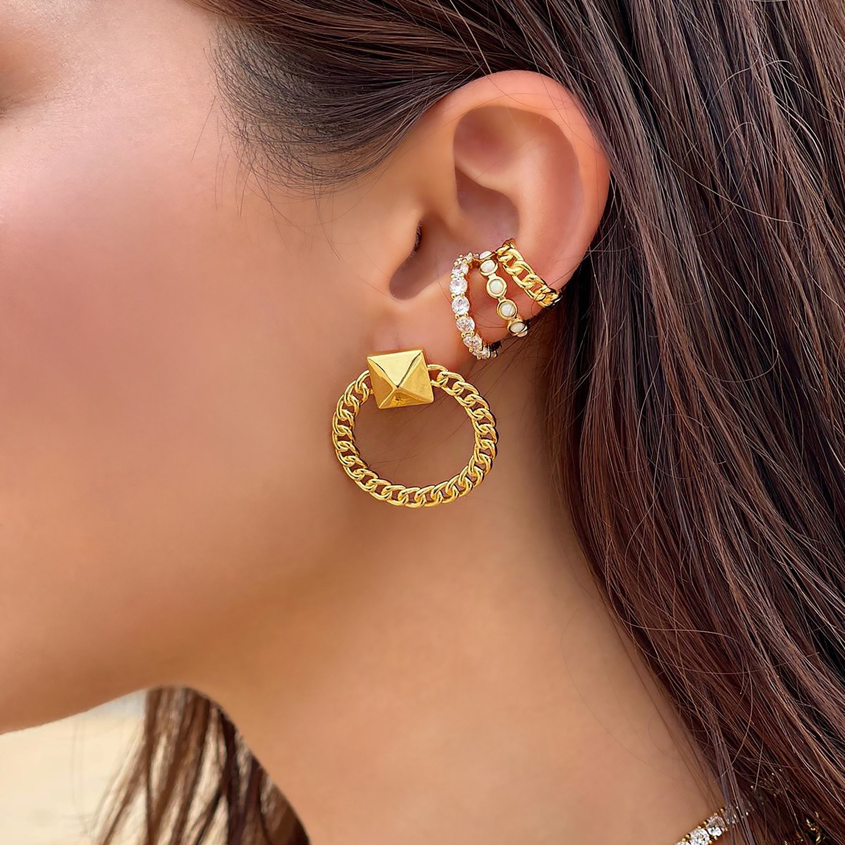 The interlinked chain design of 'The Hamptons' earrings are sure to add a hint of sophistication and elegance to any look. Simply charming when worn alone, this beautiful pair also works wonders when paired with other Celeste Starre pieces, such as 'The Hamptons' and 'The Cabo' ear cuffs.