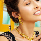 A perfect statement pair, 'The Mauritius' earrings are what you've been looking for. This starfish and seahorse duo will glisten in your ears whenever you wear them, and are ideal for dressing up a little black number for date night or an evening out with your girl gang. Pair with 'The Dallas' and 'The North Star' necklaces for the ultimate trio of golden accessories.