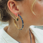 Treat yourself to the buzz-worthy 'Thunder Sky' earrings. These daring hoops are sure to electrify any look, as the dark blue hoops boast golden sky symbols that are sure to make a statement. Step up your accessory game with these sky-high statement earrings and let the world know you mean business!