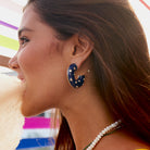 - Statement, chunky hoop earring in midnight blue with stone details