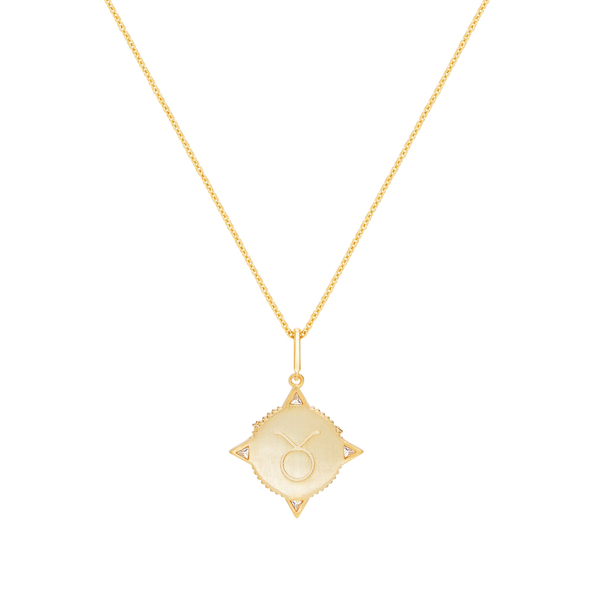• Dainty necklace design with semi-precious stone pendant, Taurus constellation, and zodiac symbol engraved on the reverse