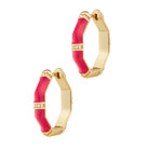 - Octagonal bamboo style huggie hoops with fuchsia details