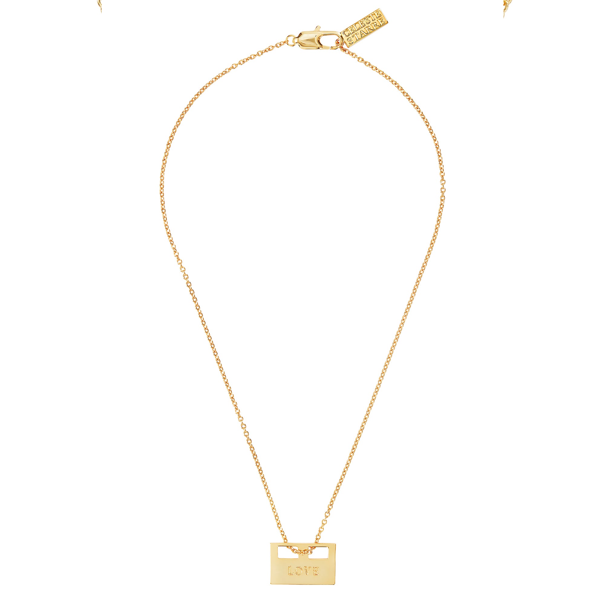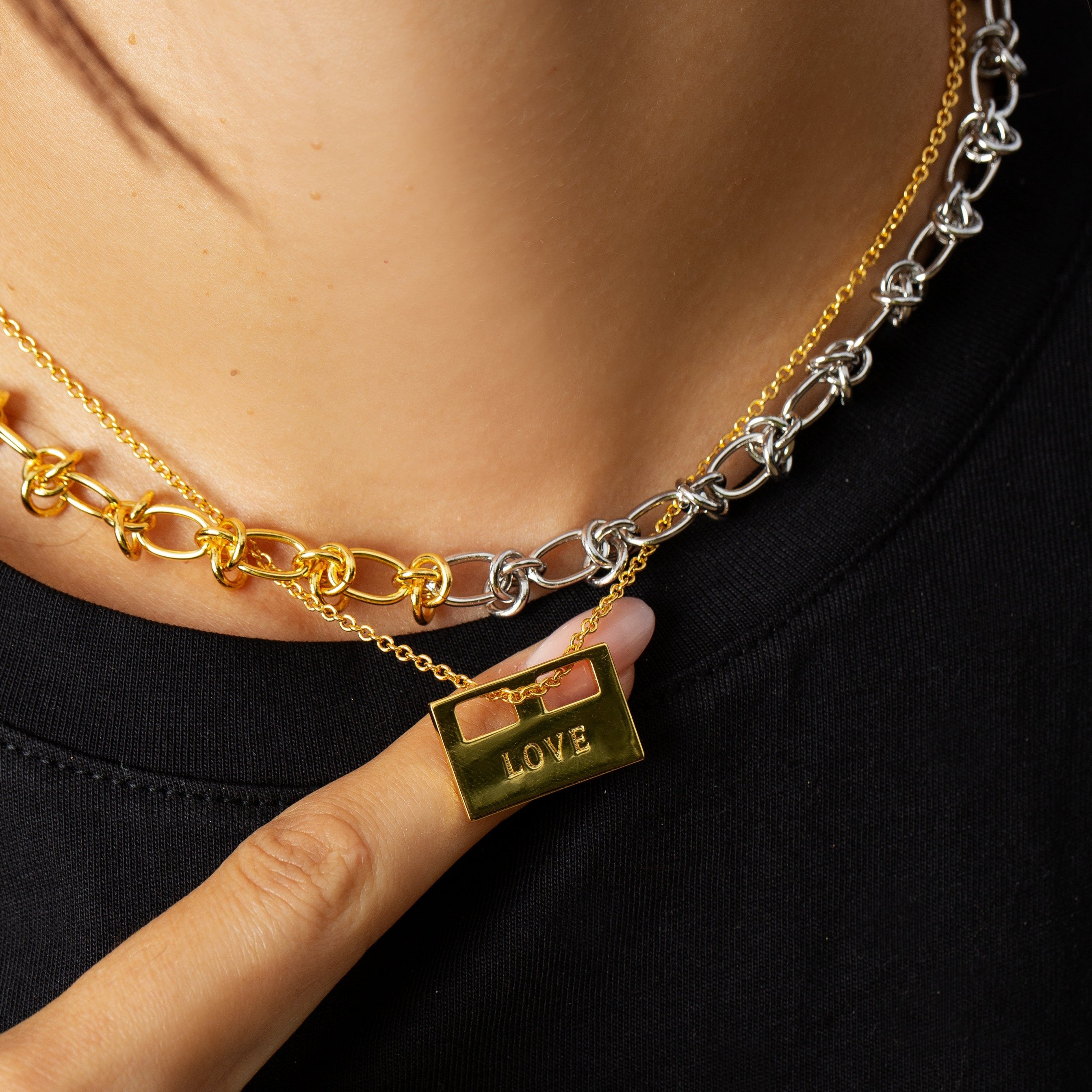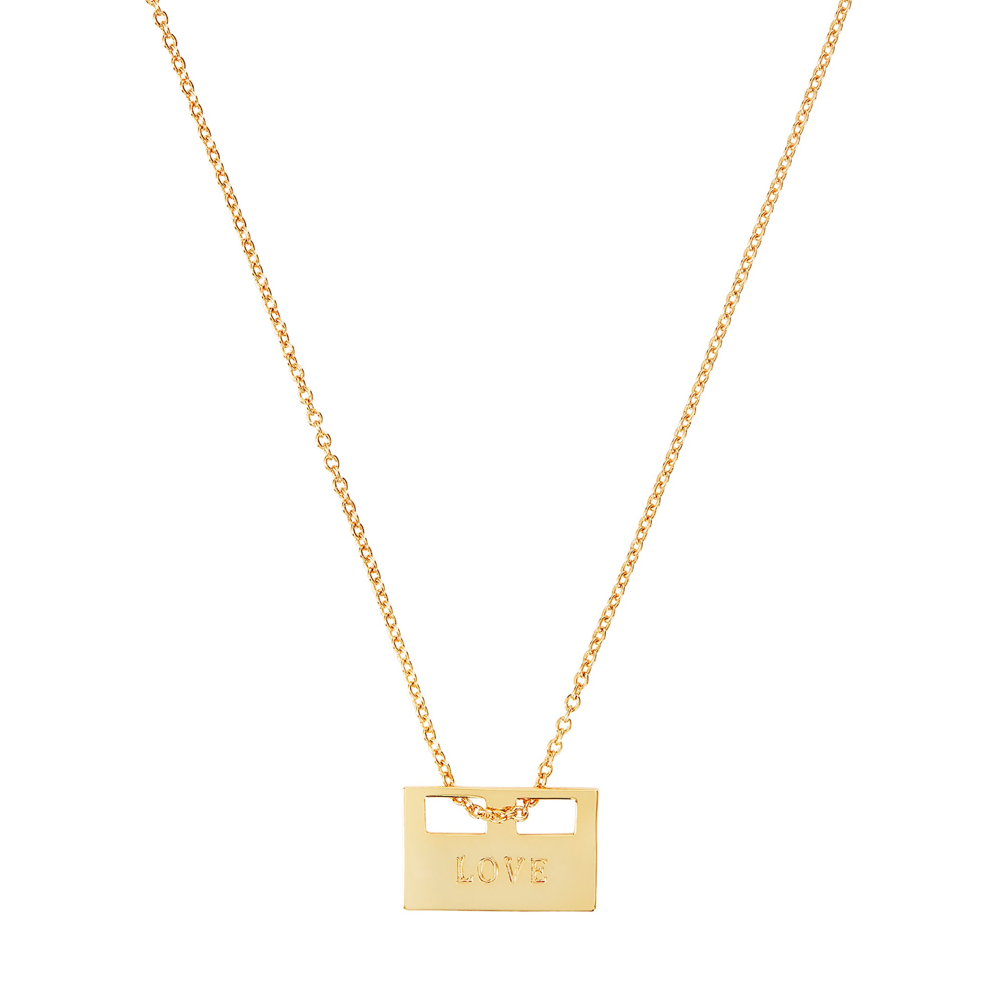 - Dainty chain design with 'LOVE' embossed rectangular charm