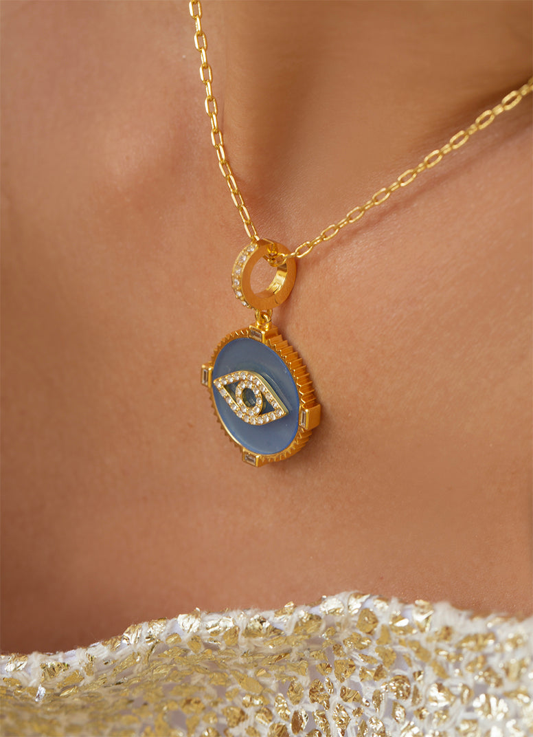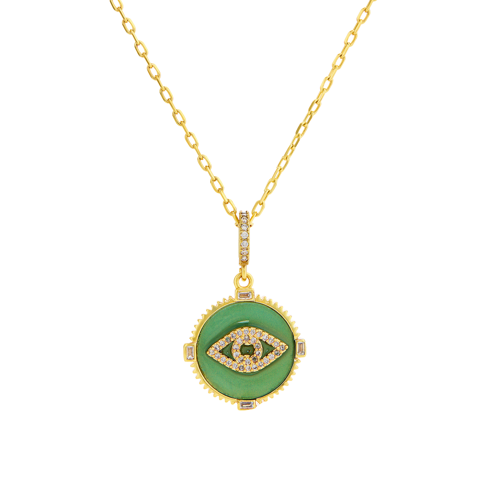 • Delicate necklace design, with green aventurine pendant and crystal evil eye detail