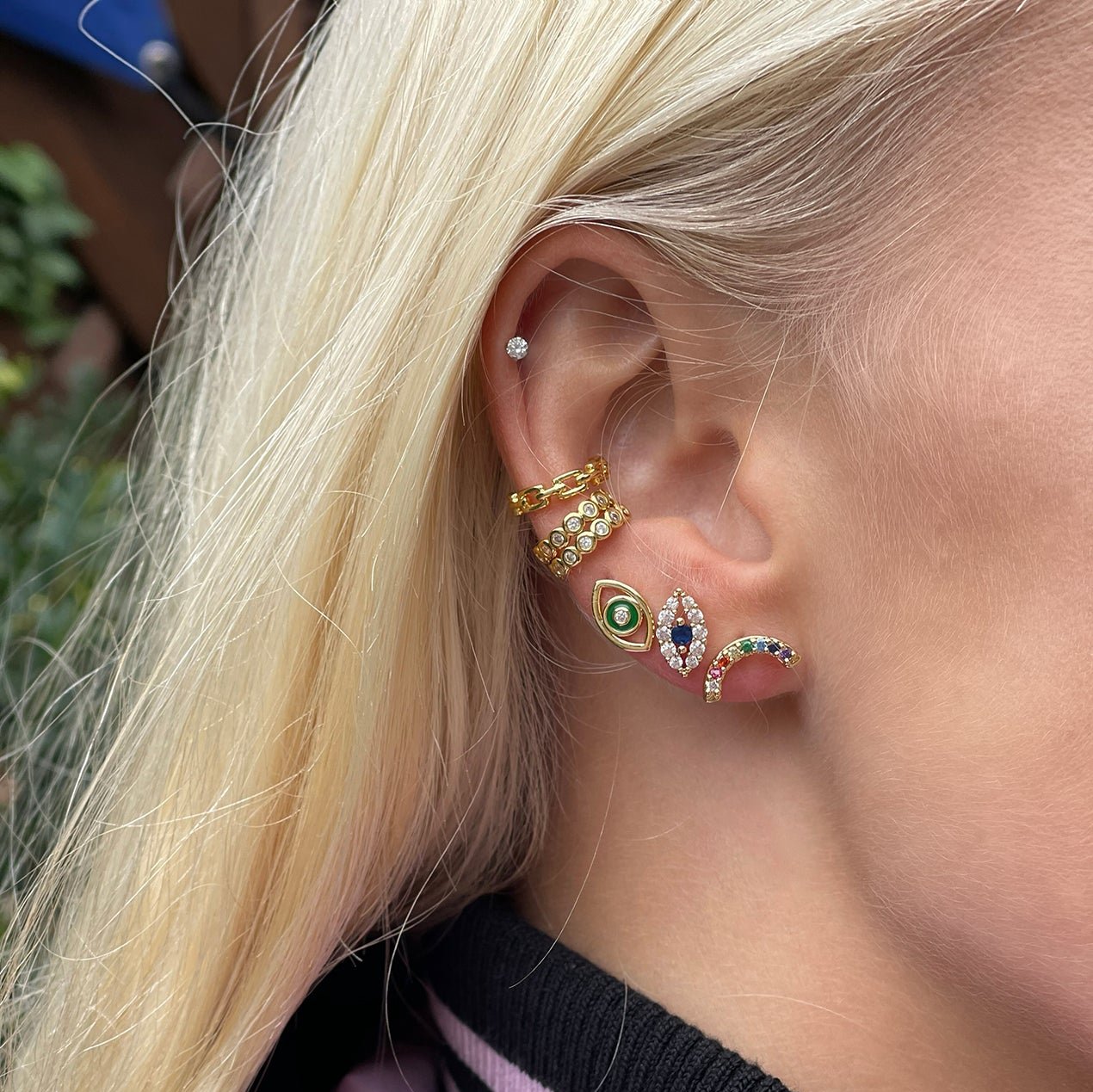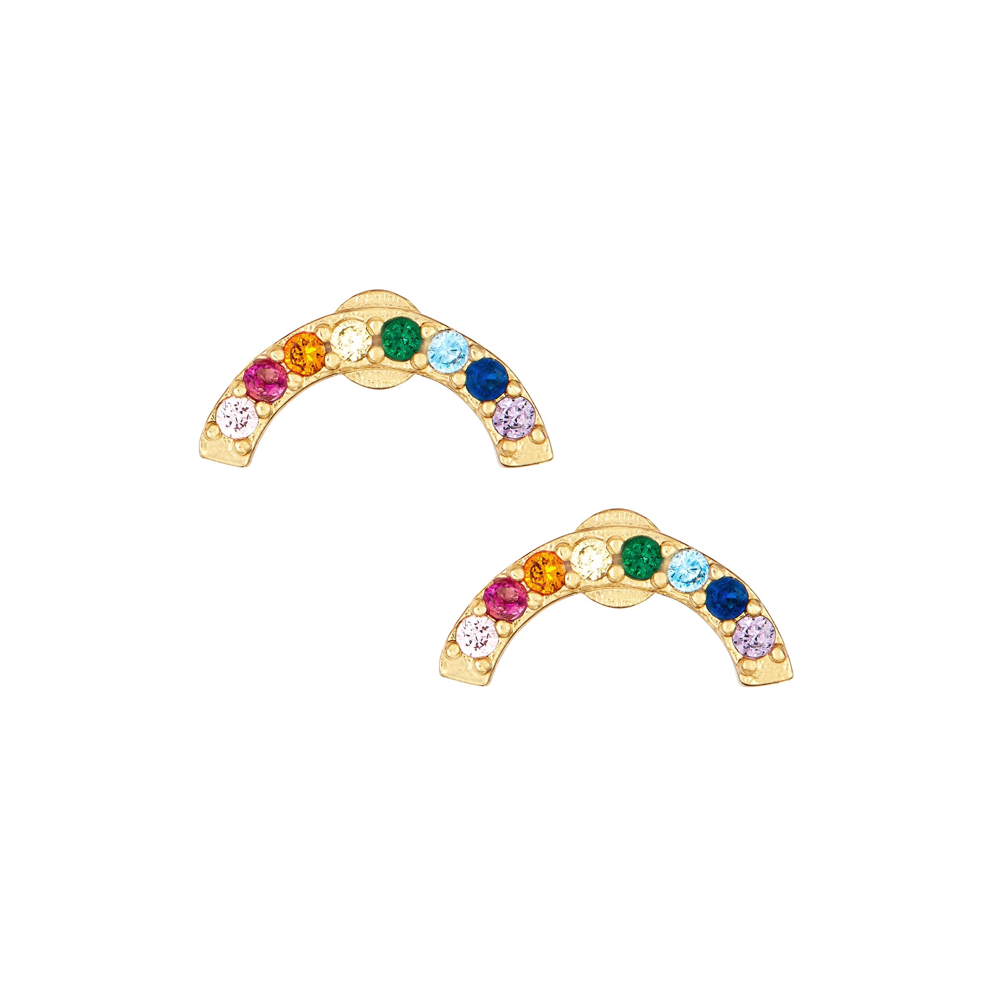 Add a pop of colour to your day-to-day look with our 'Rainbow Luck' earrings. The multi-coloured stones will bring happiness to your day as they twinkle in your ears. A perfect pair for a second hole, this duo would look great alongside our 'Rainbow Strike' earrings and 'Rainbow Dreams' necklace for a beautifully colourful Celeste Starre look.