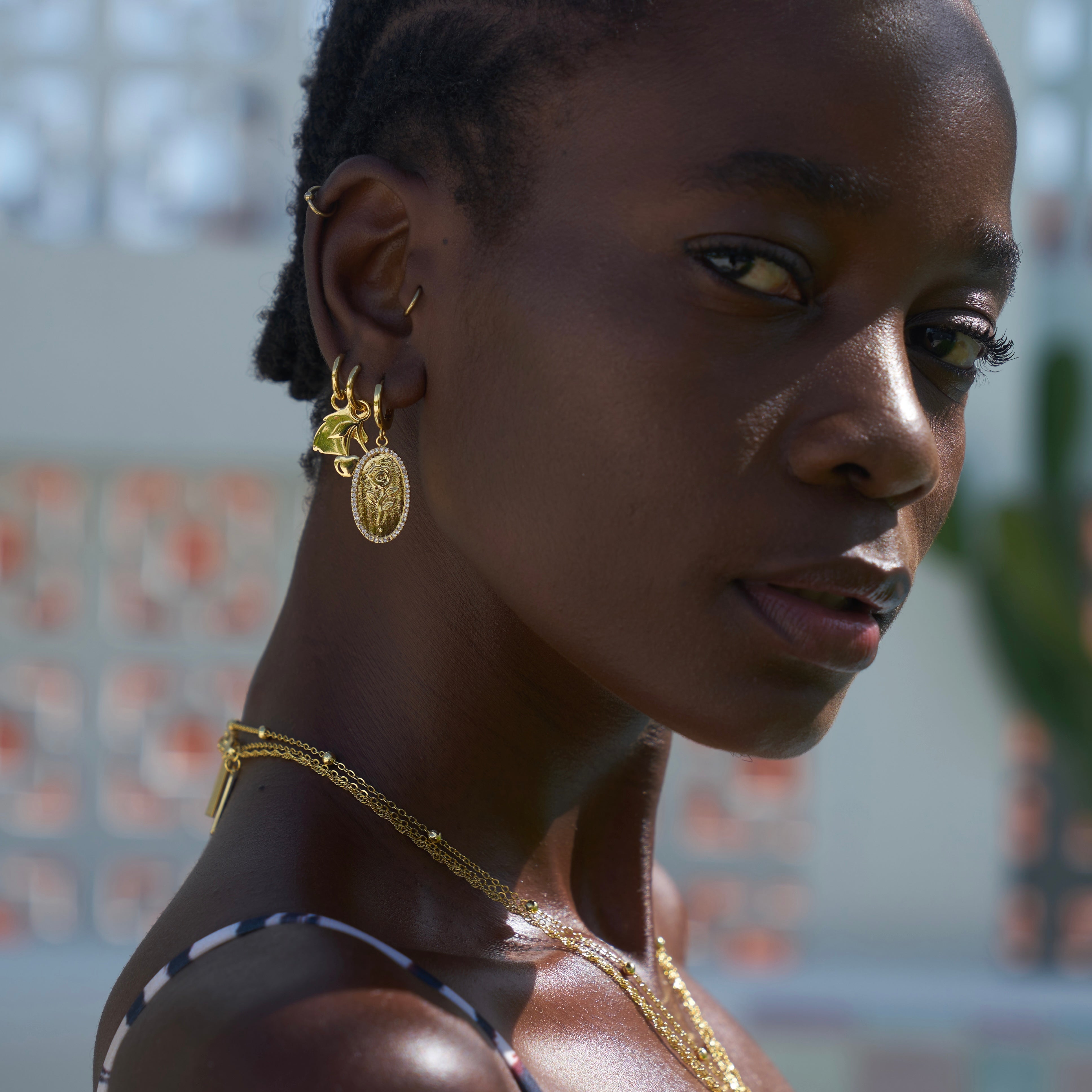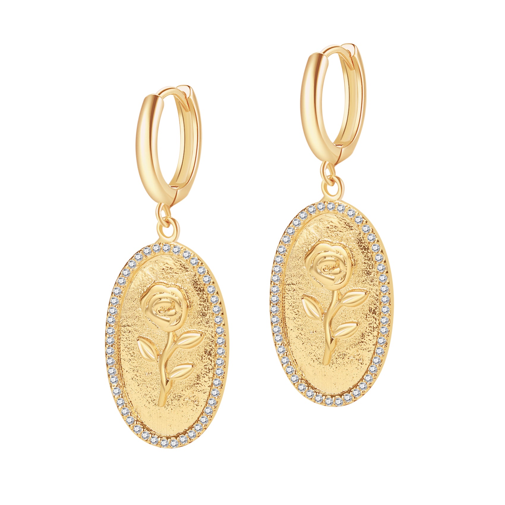 - Huggie hoop with rose engraved pendant