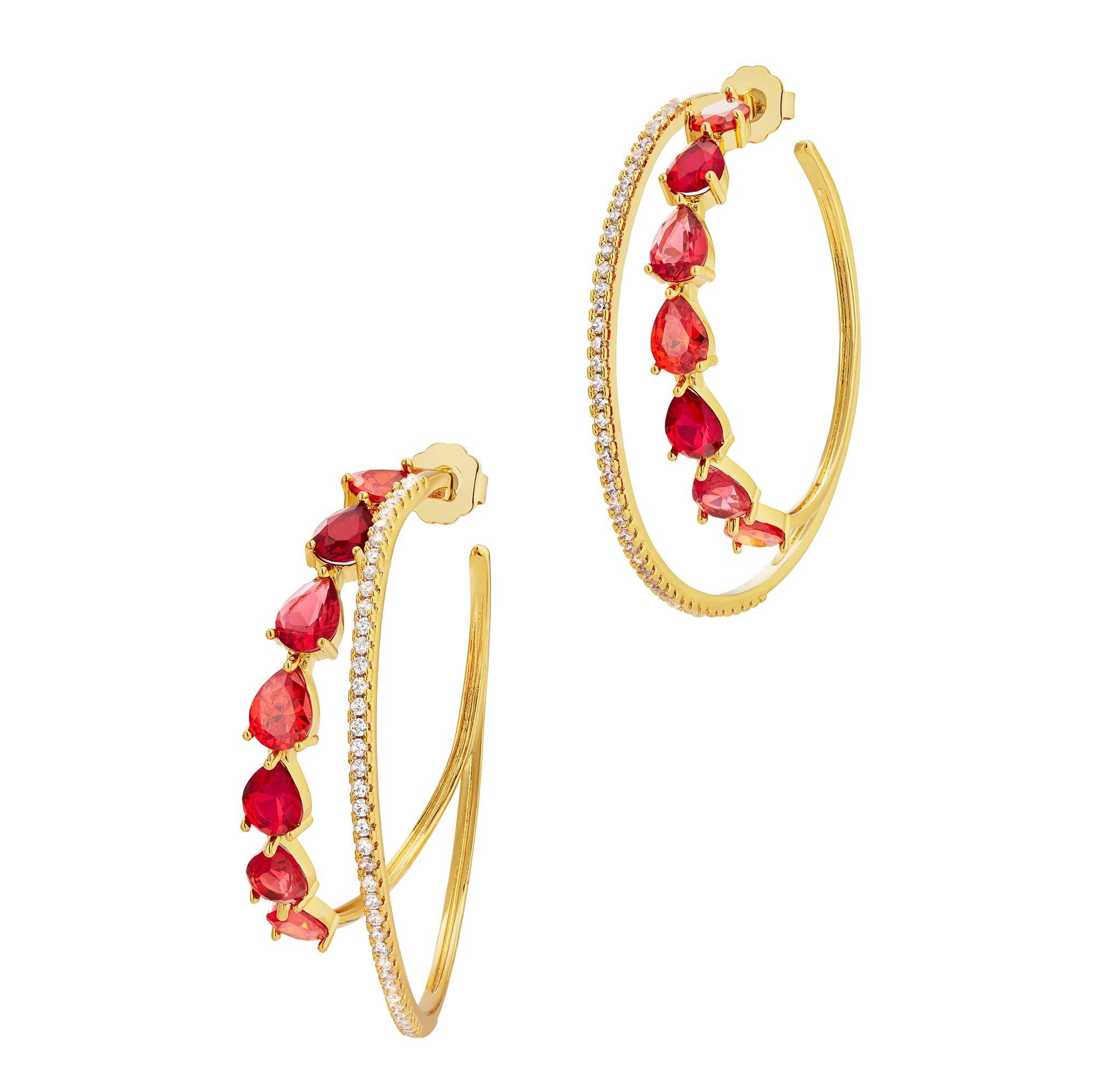 • Double hoop design with small crystal and red and orange teardrop stone details