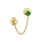 - One piece earring designed to loop from one piercing to another, with green and clear stone studs