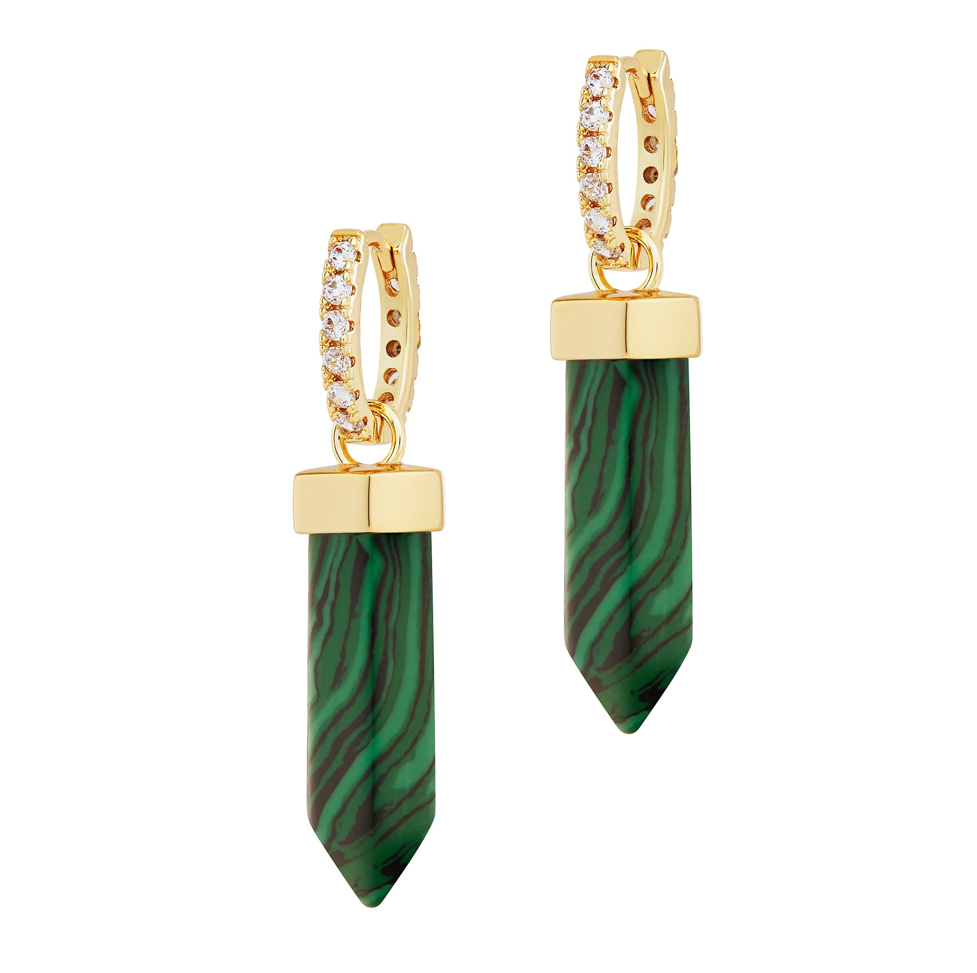 - Huggie earring with malachite 'crystal' charm