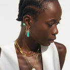Adorn your ears with our 'Turquoise Delight' earrings, a circle stud featuring a vibrant turquoise border and a sparkling stone at its heart. Elevate your style with this delightful combination of colour and sparkle. Wear in a secondary hole with our 'Witchy Vibes' earrings, for a blue-green Celeste Starre combo that should definitely be seen!