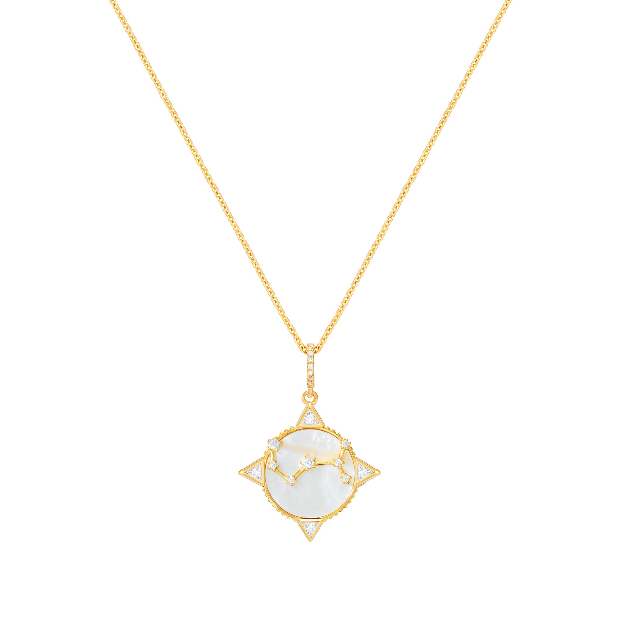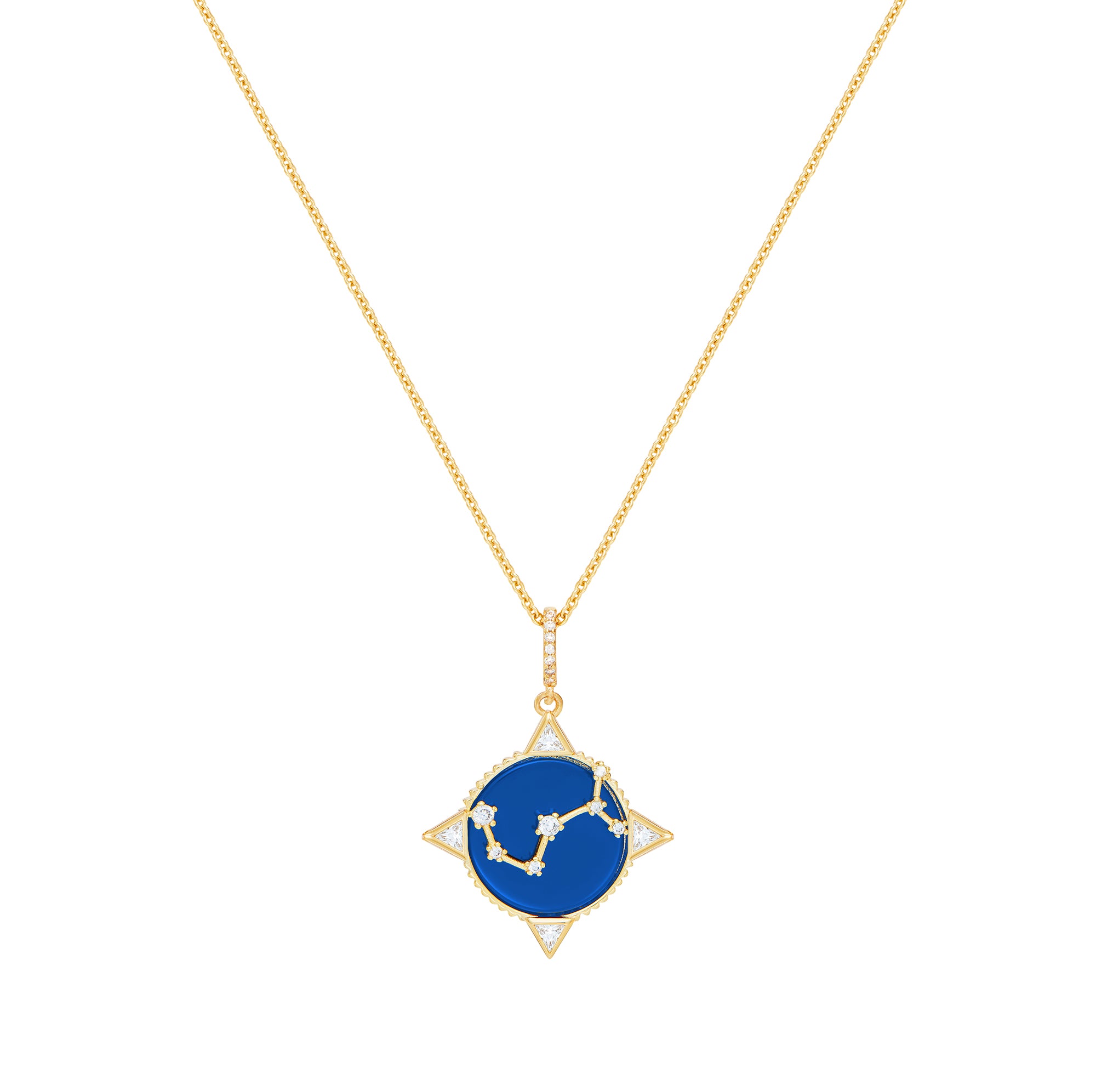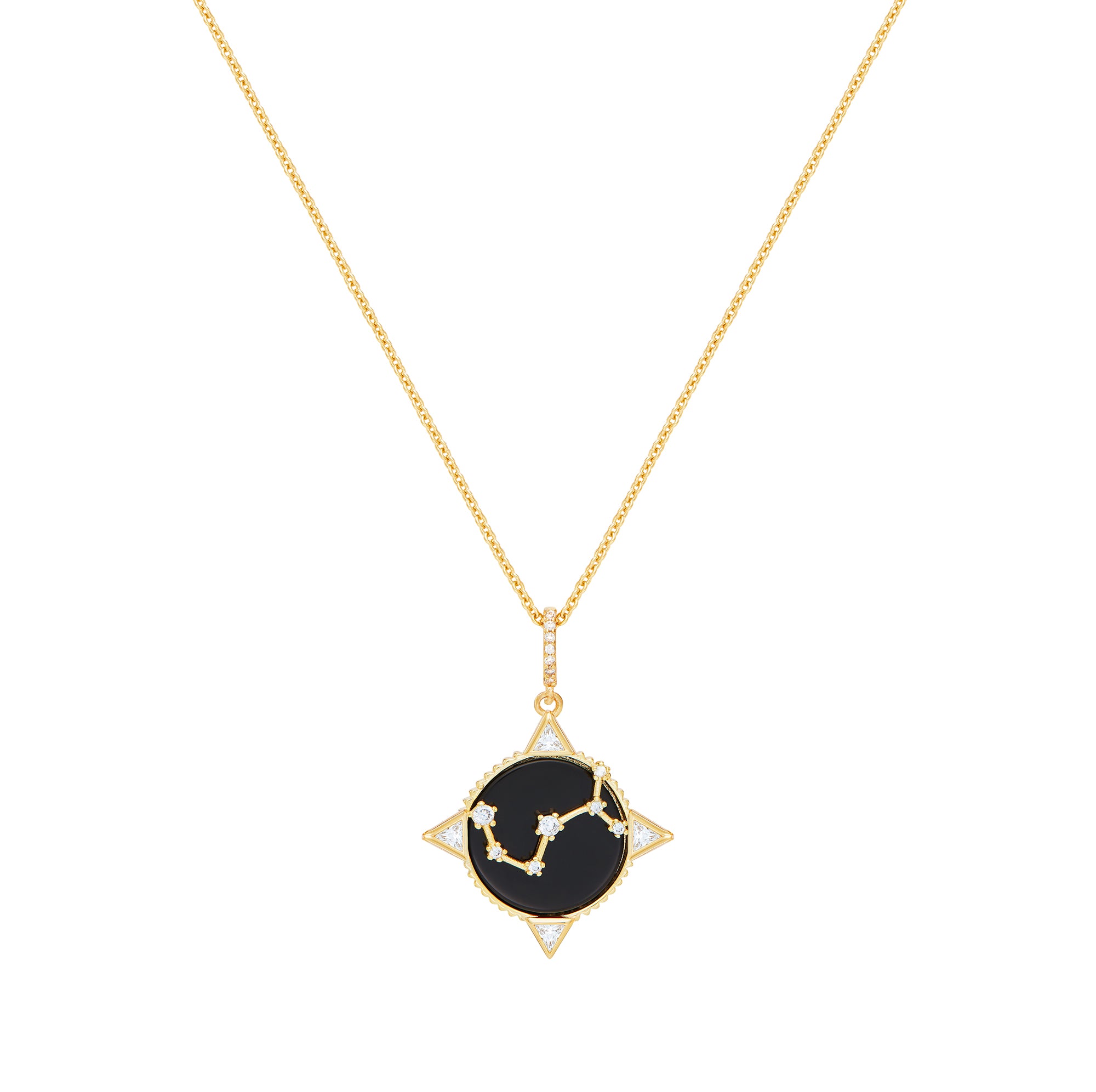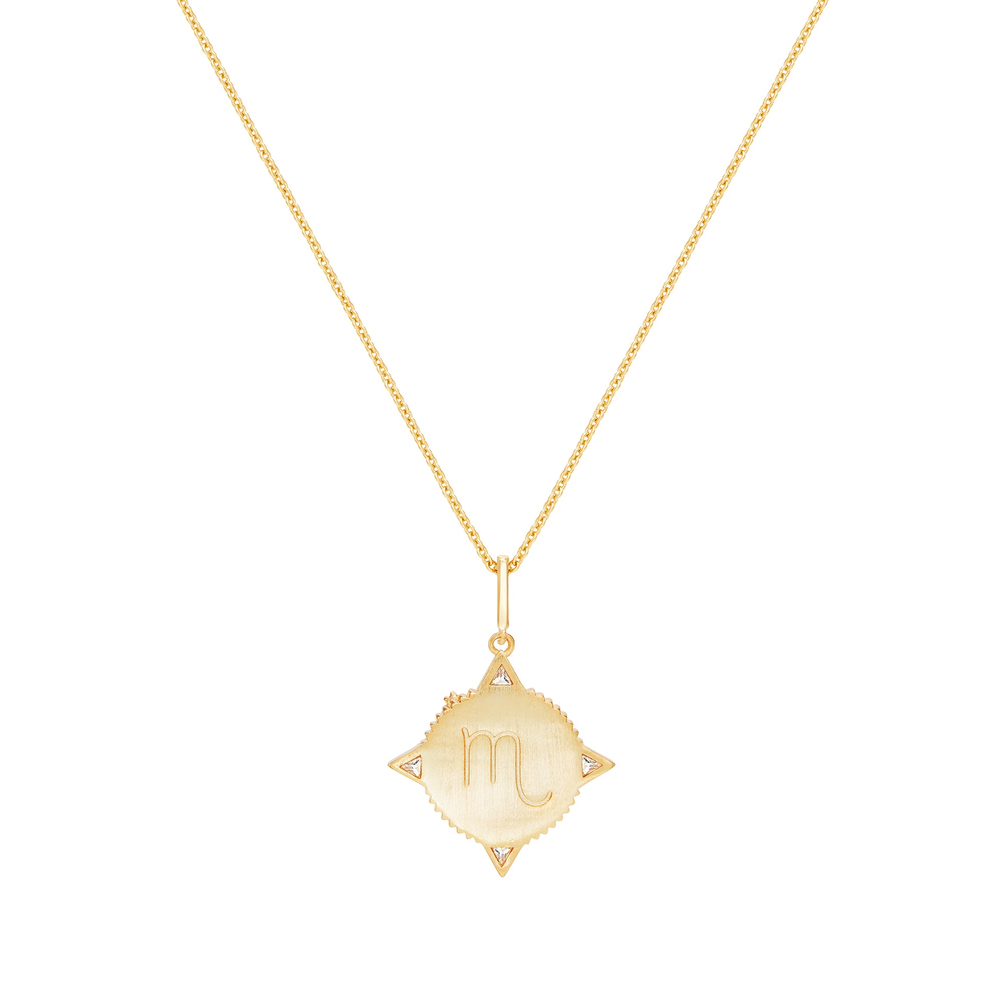 - Dainty necklace design with semi-precious stone pendant, Scorpio constellation, and zodiac symbol engraved on the reverse