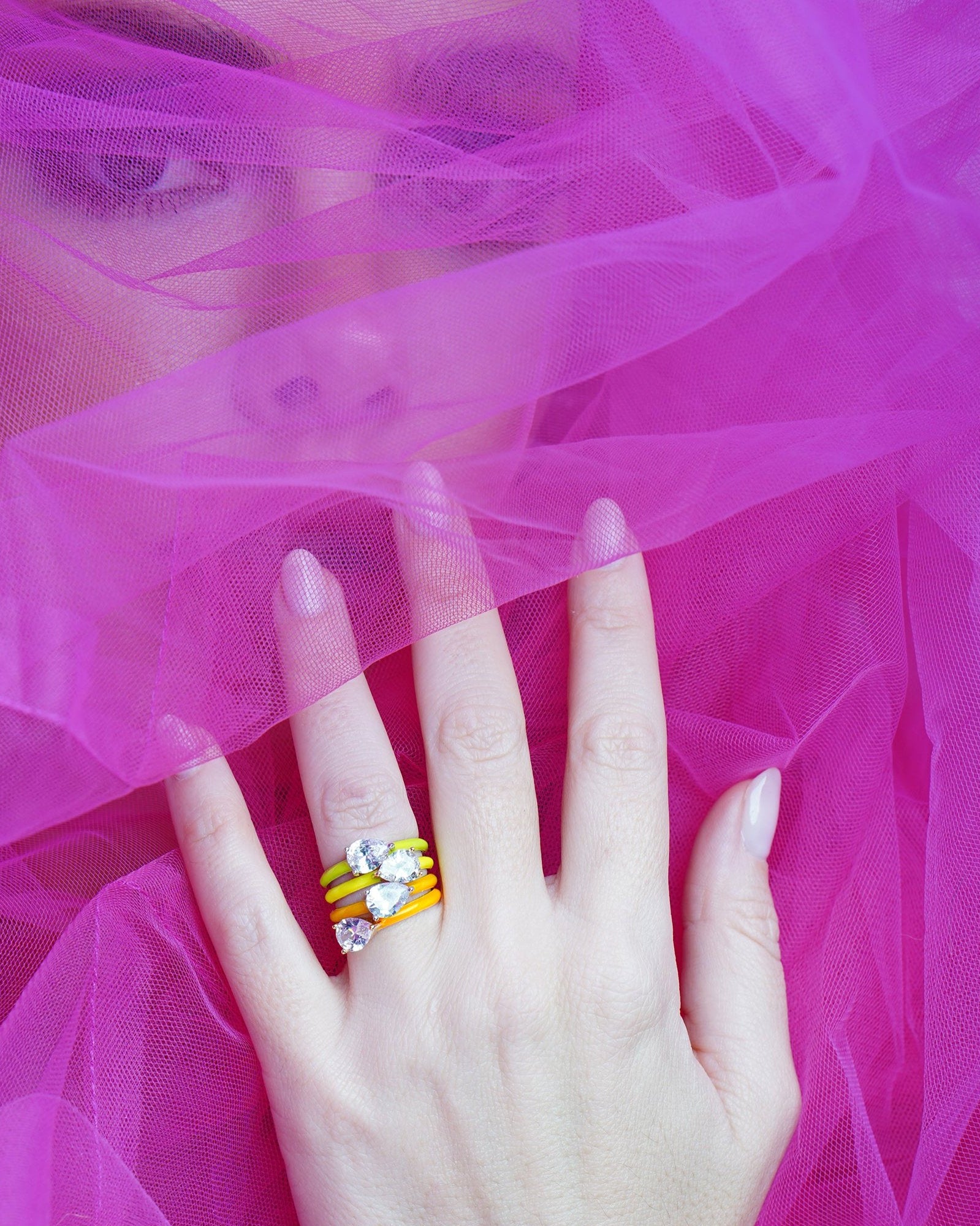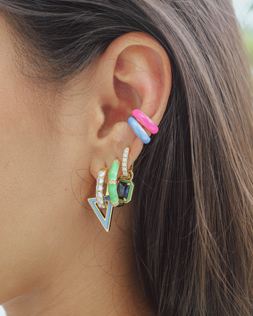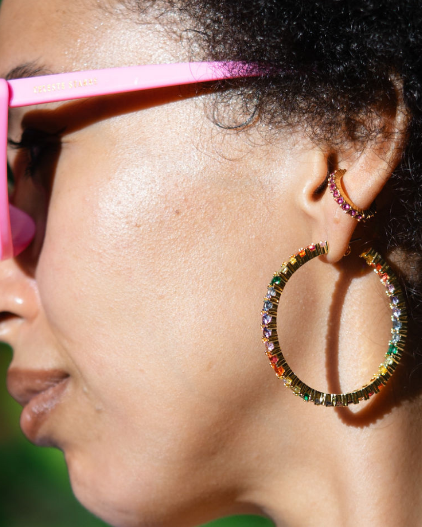 The Beverly Hills collection screams a glamorous, classic, yet playful style; reflective of the individual styles and friendship of Andraya and Beau. From super sparkly jewels to fun neon pieces, the collection draws inspiration from Beau’s artwork - namely her Barbie ‘plastic’ and neon art series’ - as well as red carpet ready jewels. The designs of statement earrings, fun huggies and stackable rings are the perfect pieces to take you from daytime chic to evening glam. In true Beverly Hills styles!