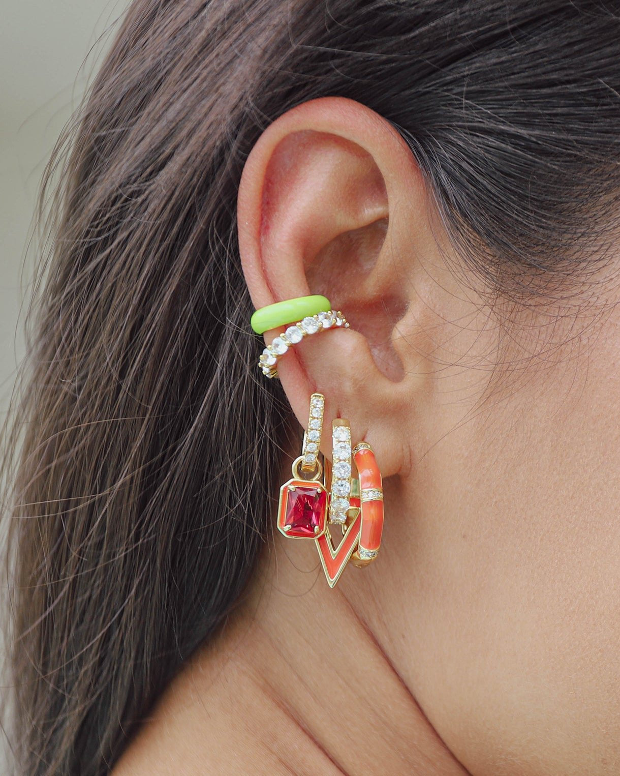 - Huggie earring with red lip charm