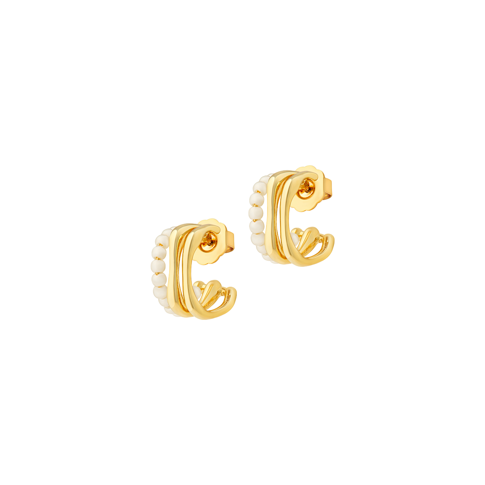 Perfect for elevating everyday outfits or complementing evening looks, the Riviera Pearl Hoops add texture and softness to your ear stack. Their balanced silhouette makes them easy to style alongside gold huggies or worn alone for a polished, sophisticated finish.