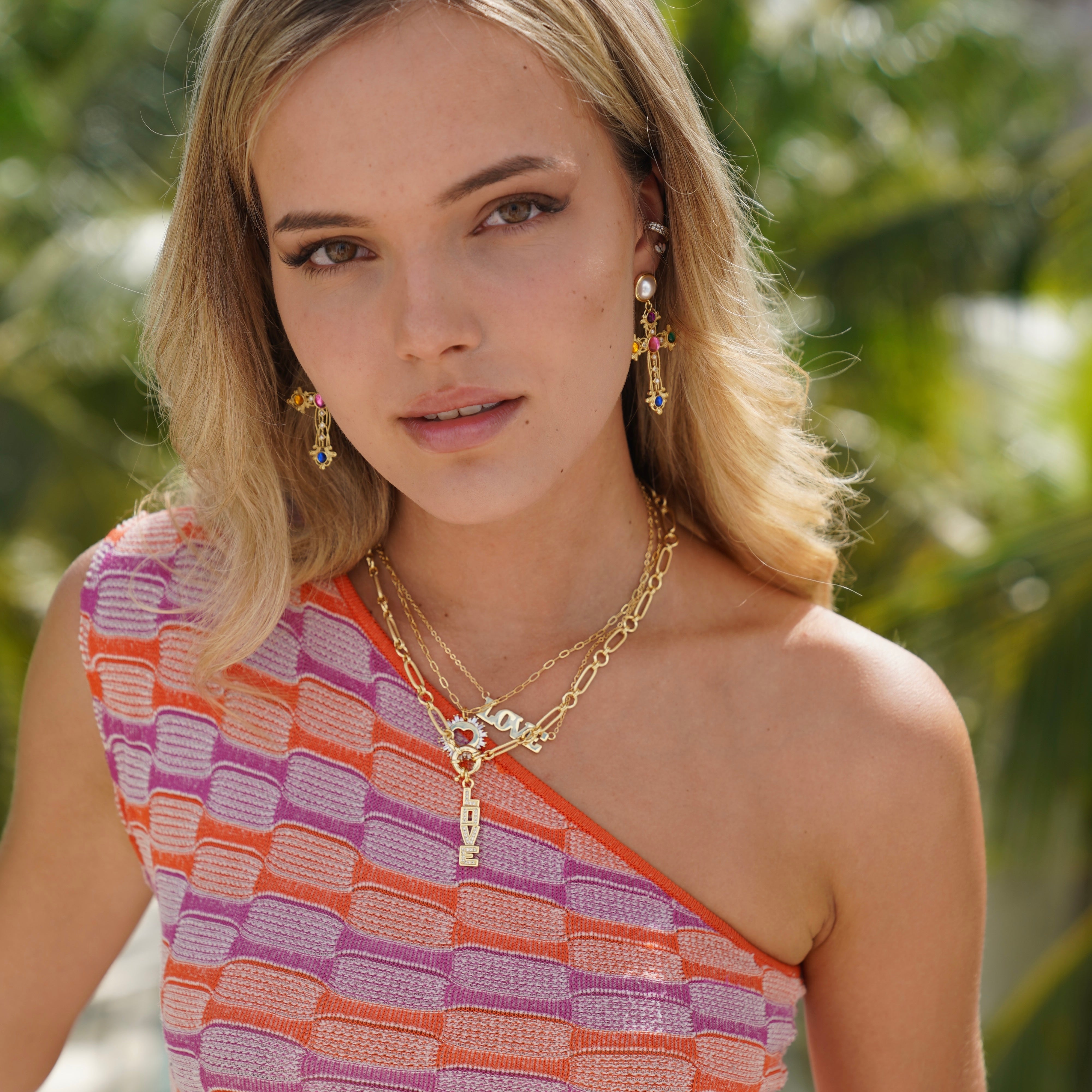 Our 'Big Love' necklace will boast your affections whenever you wear it. Perfect for any occasion, the sparkling 'LOVE' charms will twinkle round your neck and help you to feel adoration for those around you. Wear with our 'Big Love' earrings and layer with the 'Twin Flame Love' necklace to help keep the passion alive, and not just in your look!