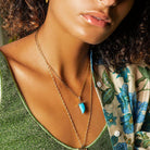 Let your spiritual soul come to life with our 'Cosmic Energy' necklace in turquoise. It will allow you to release all your negative thoughts and help you to breathe in the bright energy of the sun. The turquoise will give you an overwhelming sense of peace and happiness whenever you wear it. Wear with 'The Woodstock' necklace for a truly powerful Celeste Starre duo.