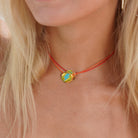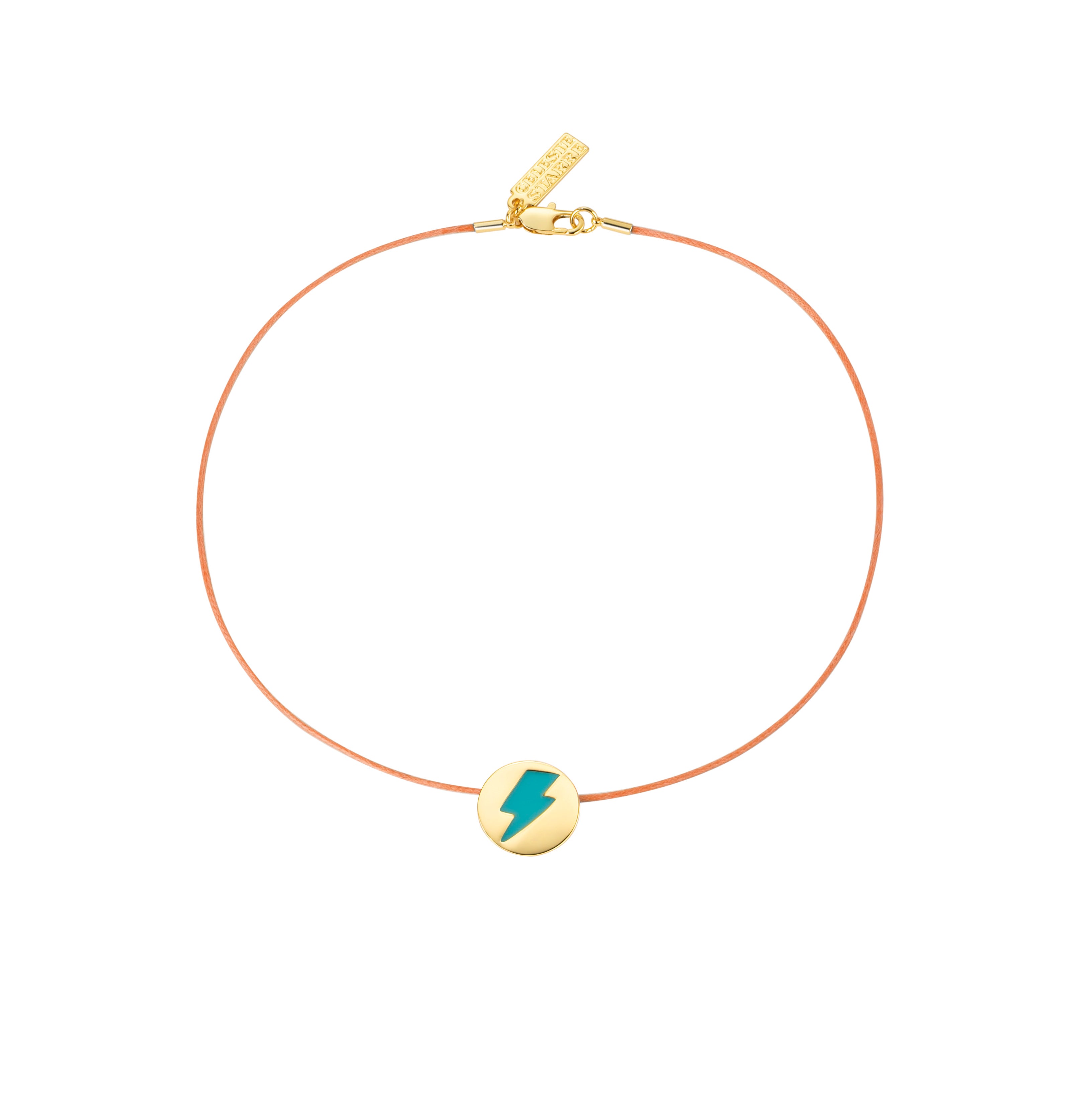 Illuminate your outfit with our 'Light Up My Life' necklace. The orange choker contrasts with the blue lightning bolt, creating a fun addition to your jewellery box. Not only will it add a pop of colour to your look, but it will also bring joy whenever you wear it. Perfect for layering with your other Celeste Starre faves, we love to pair this piece with our 'Magic Eye Amulet' necklace.