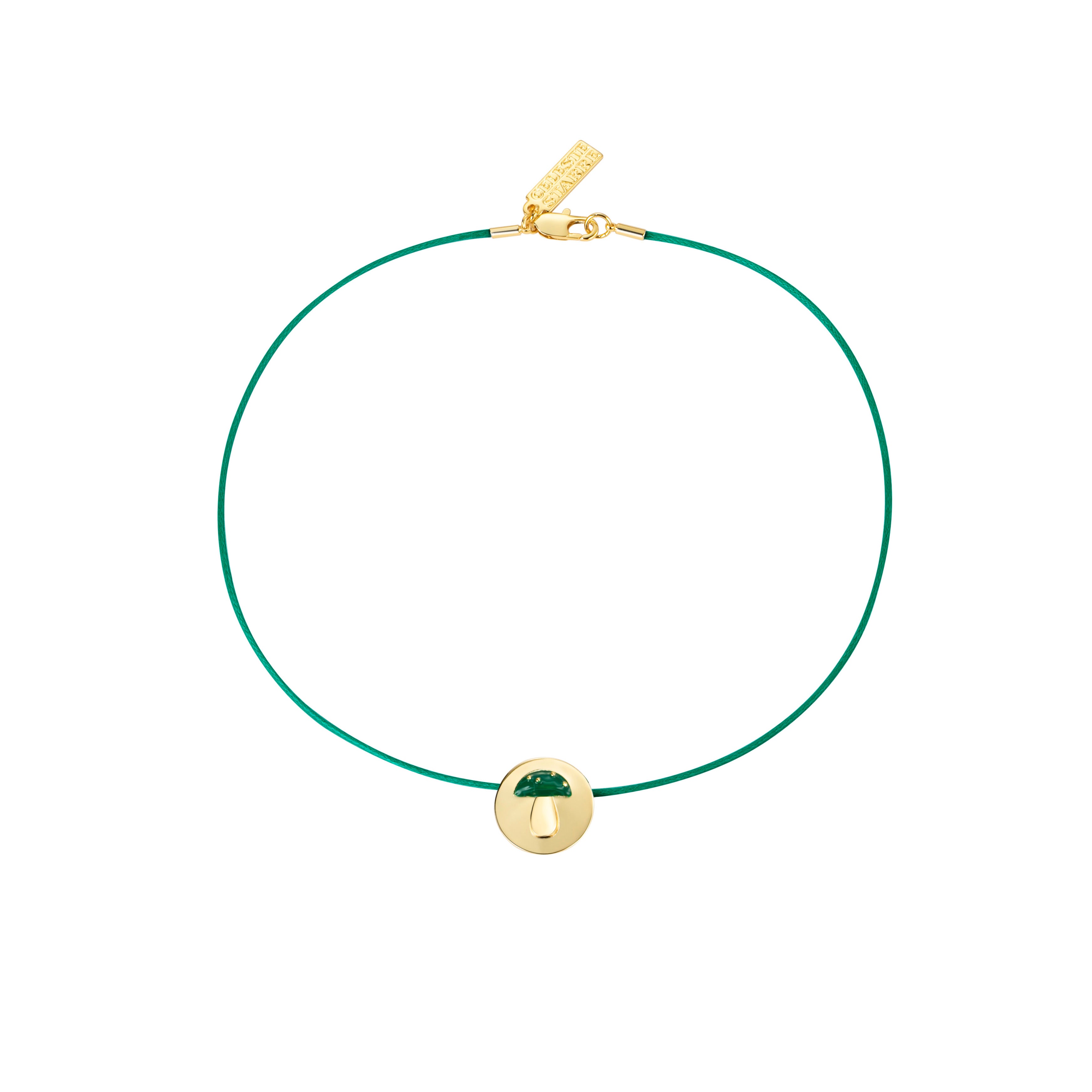 Take a trip towards spiritual growth, enlightenment, and rebirth with our 'Magic Trip' necklace. The green colour of this choker will enhance your look while the mushroom charm makes it a playful addition to any outfit for any occasion. Embrace your inner magic with this one-of-a-kind accessory and layer with our 'Give 'Em Daggers' and 'Magic Eye Amulet' necklaces to create the perfect Celeste Starre stack.