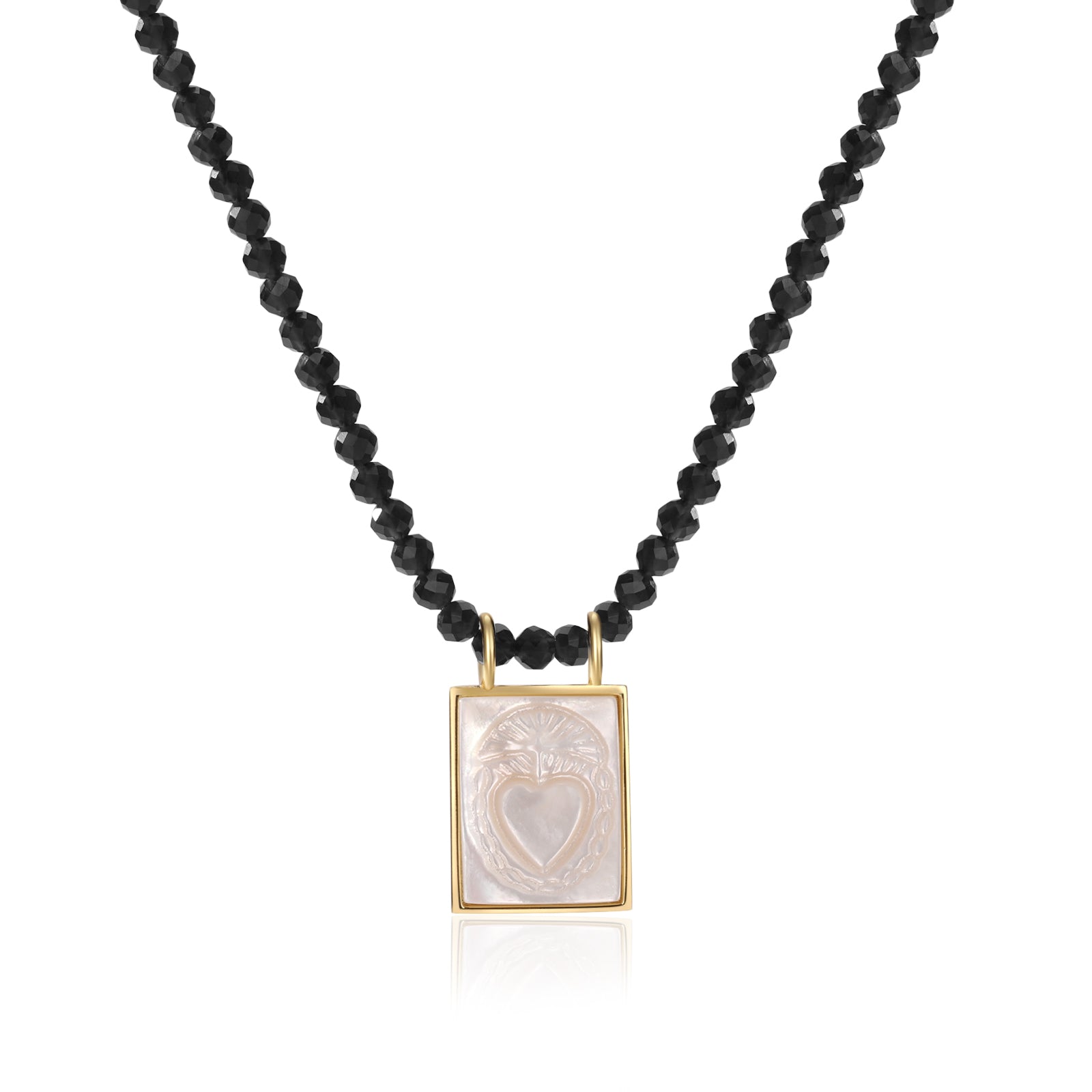 Embrace the divine elegance of our 'Sacred Heart Necklace,' where the luminescent mother of pearl takes center stage, ensconced in a delicate 18K recycled Gold frame. This pendant is more than just an accessory; it's a symbol of grace and spirituality. Wear it close to your heart and carry a touch of sacred beauty wherever you go.