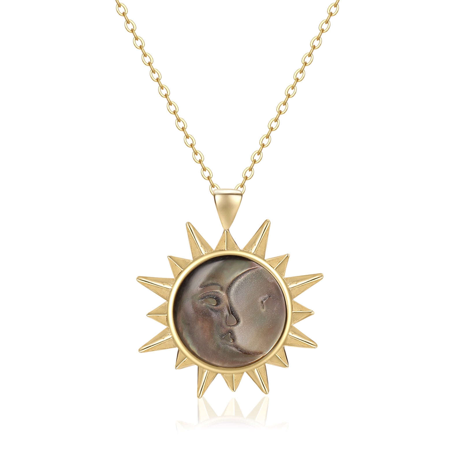 Evoke the mystique of celestial beauty with our 'Sun And Moon Magic Necklace.' Crafted from Plated 18K recycled Gold and adorned with black shell, this necklace channels the captivating dance of the sun and moon. It's a celestial masterpiece that brings an air of enchantment to your style, making you feel like a star under the night sky.