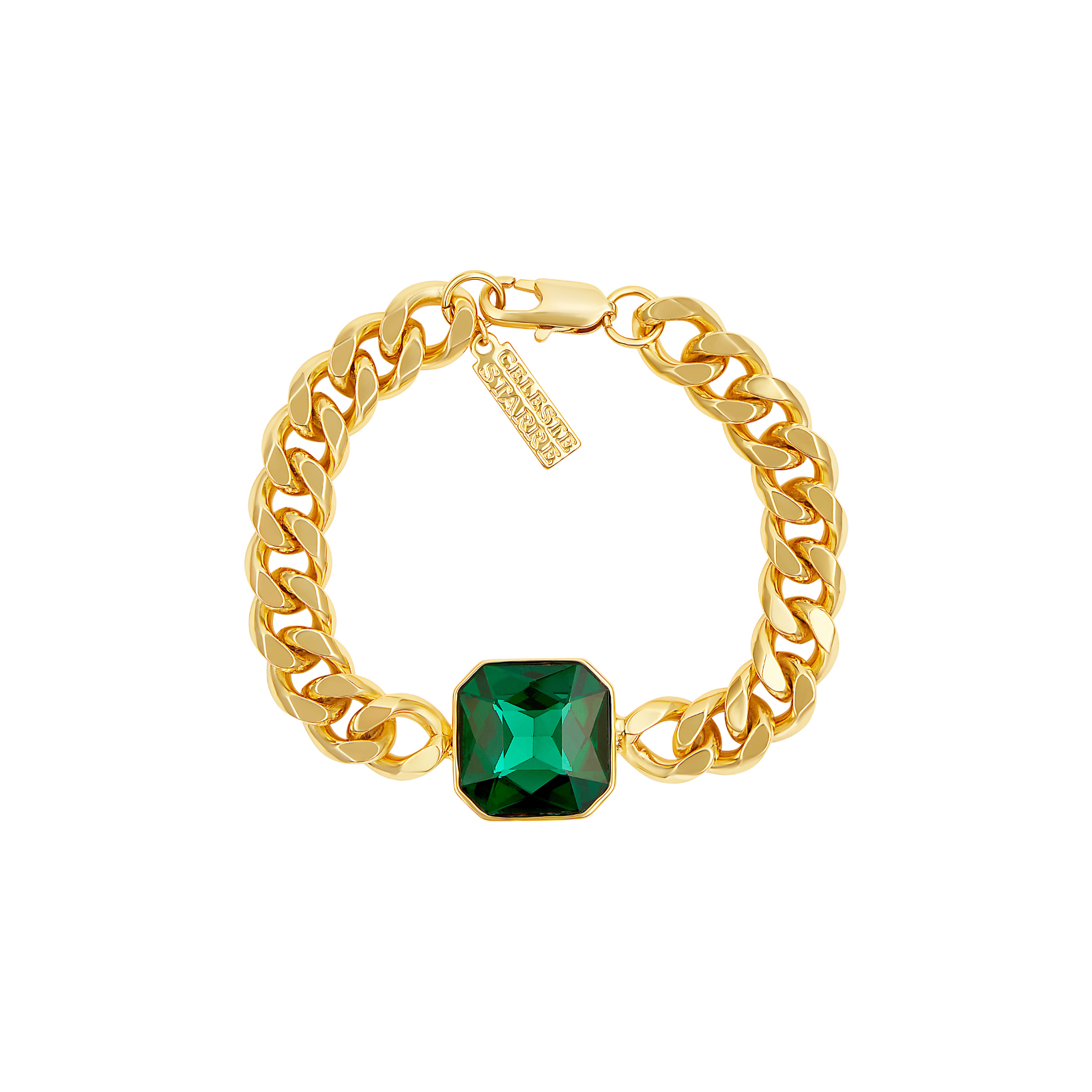 A bold classic with a modern edge. The Emerald Chainlink Bracelet features a chunky gold chain balanced by a striking emerald-green stone - a statement of power, confidence, and timeless style.