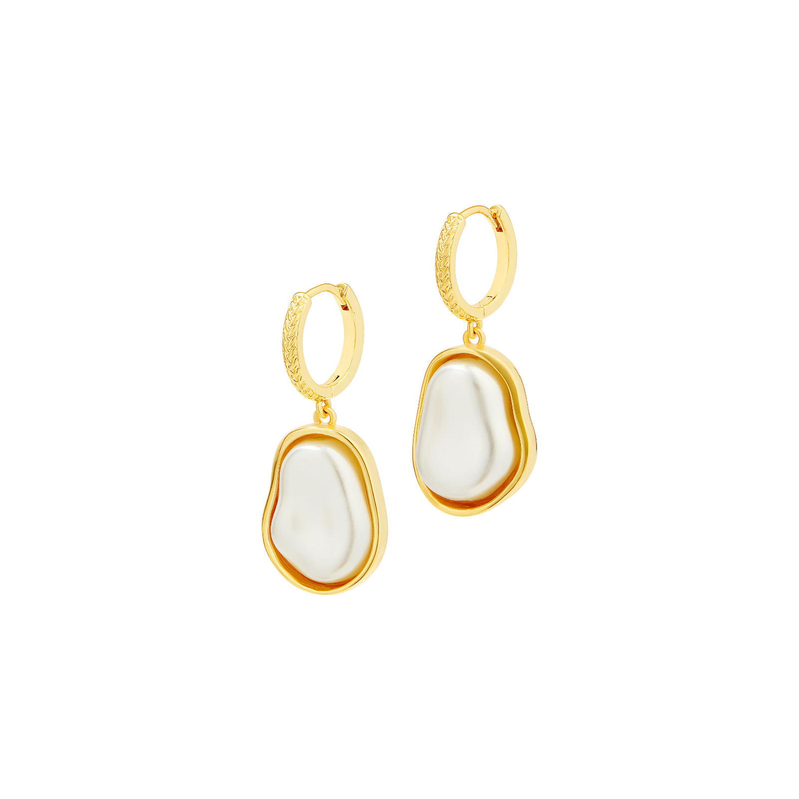 Modern glamour meets timeless grace. The Pearl Drop Hoop Earrings reimagine the classic pearl with a contemporary twist — fluid, organic shapes framed in gold for a look that’s effortlessly refined.