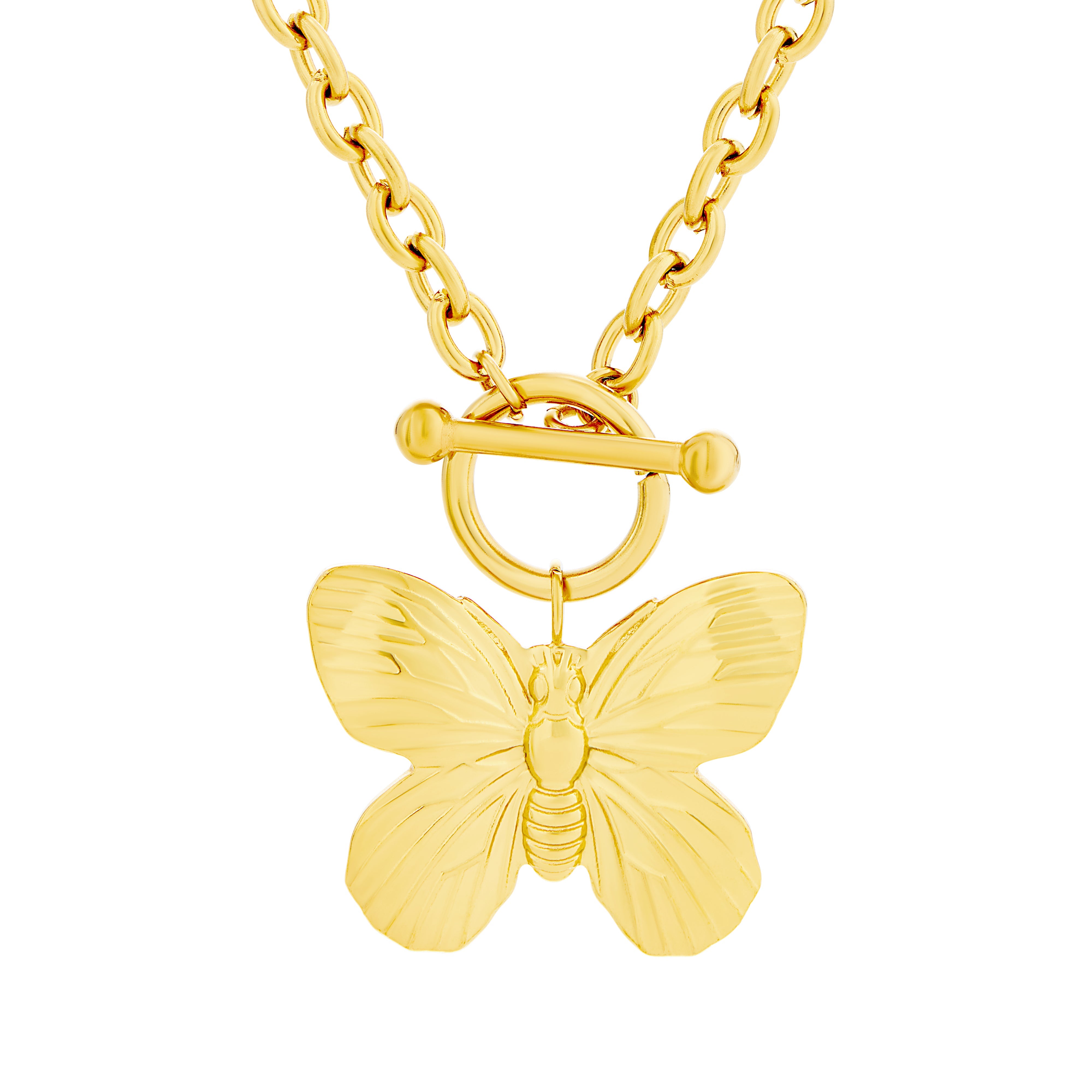The oversized butterfly brings just the right amount of drama to your neckline, while the rope chain adds texture that works beautifully solo or stacked.
