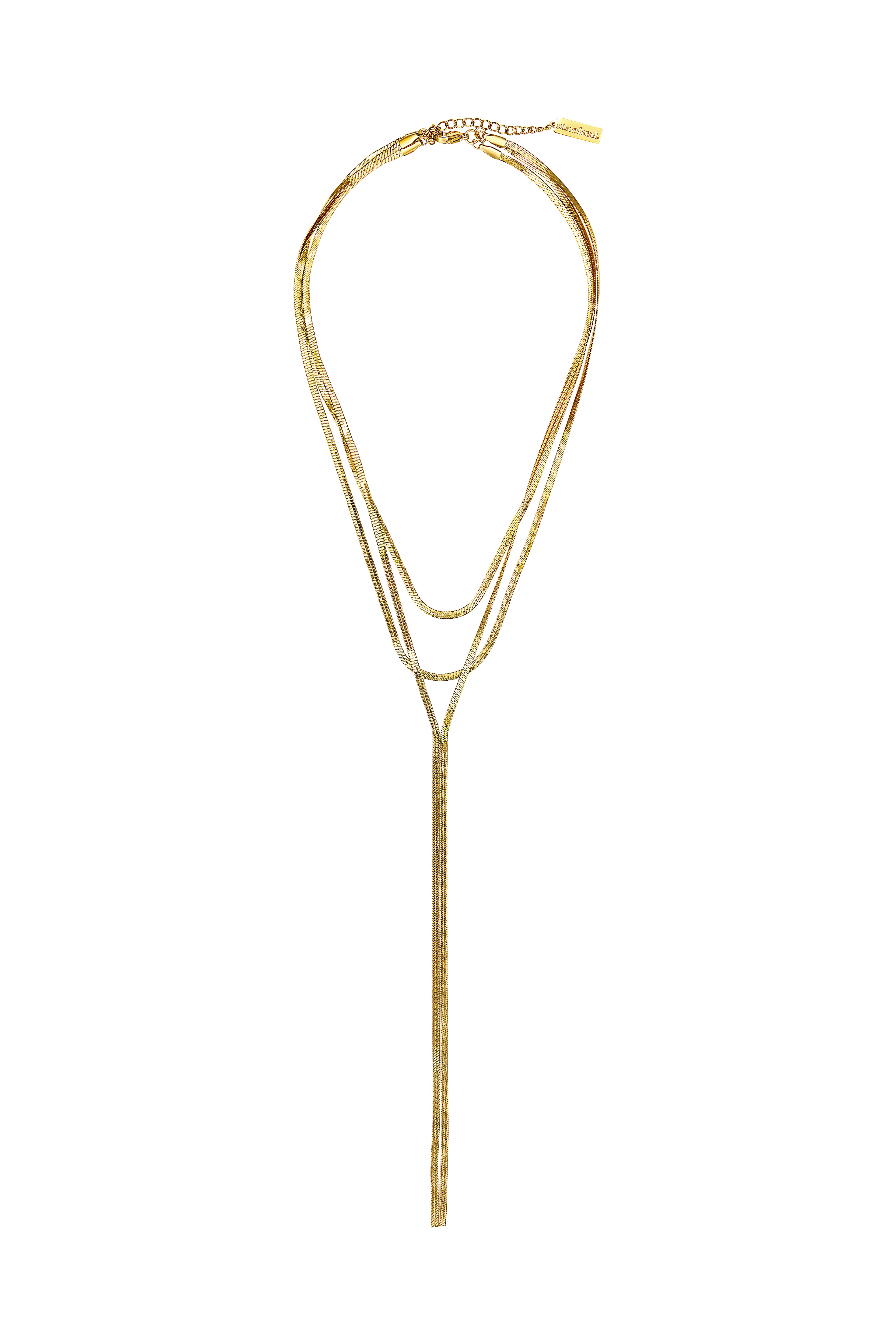 Slinky, fluid, and made to flirt—The Blue Lagoon wraps your neckline like a whisper of gold. With its layered chains and extra-long draping strand, this lariat-style piece is equal parts effortless and daring.