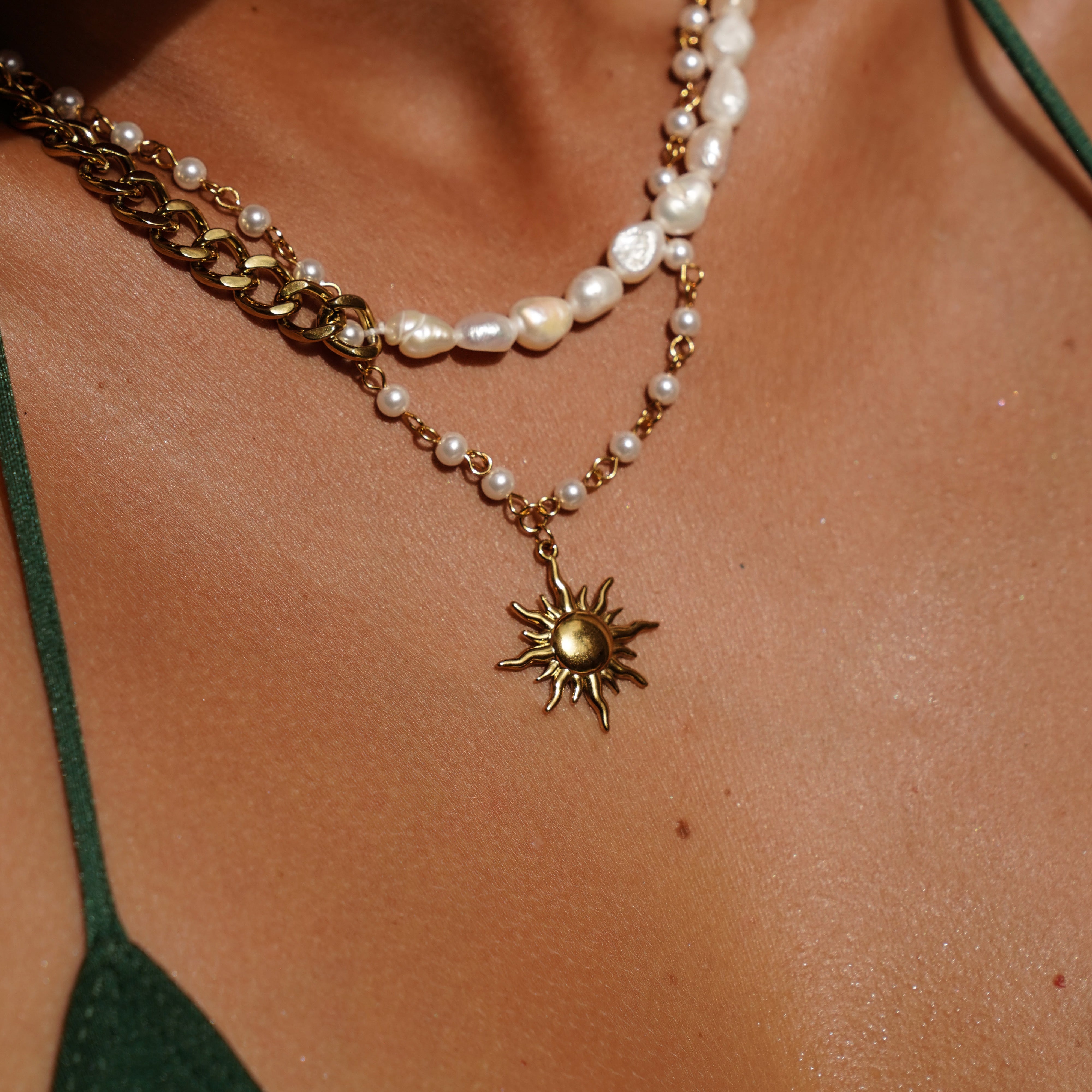 A little sunshine for your stack ☀️ This pearl-beaded beauty brings the golden glow with a bold sun charm that’s basically your new main character energy.