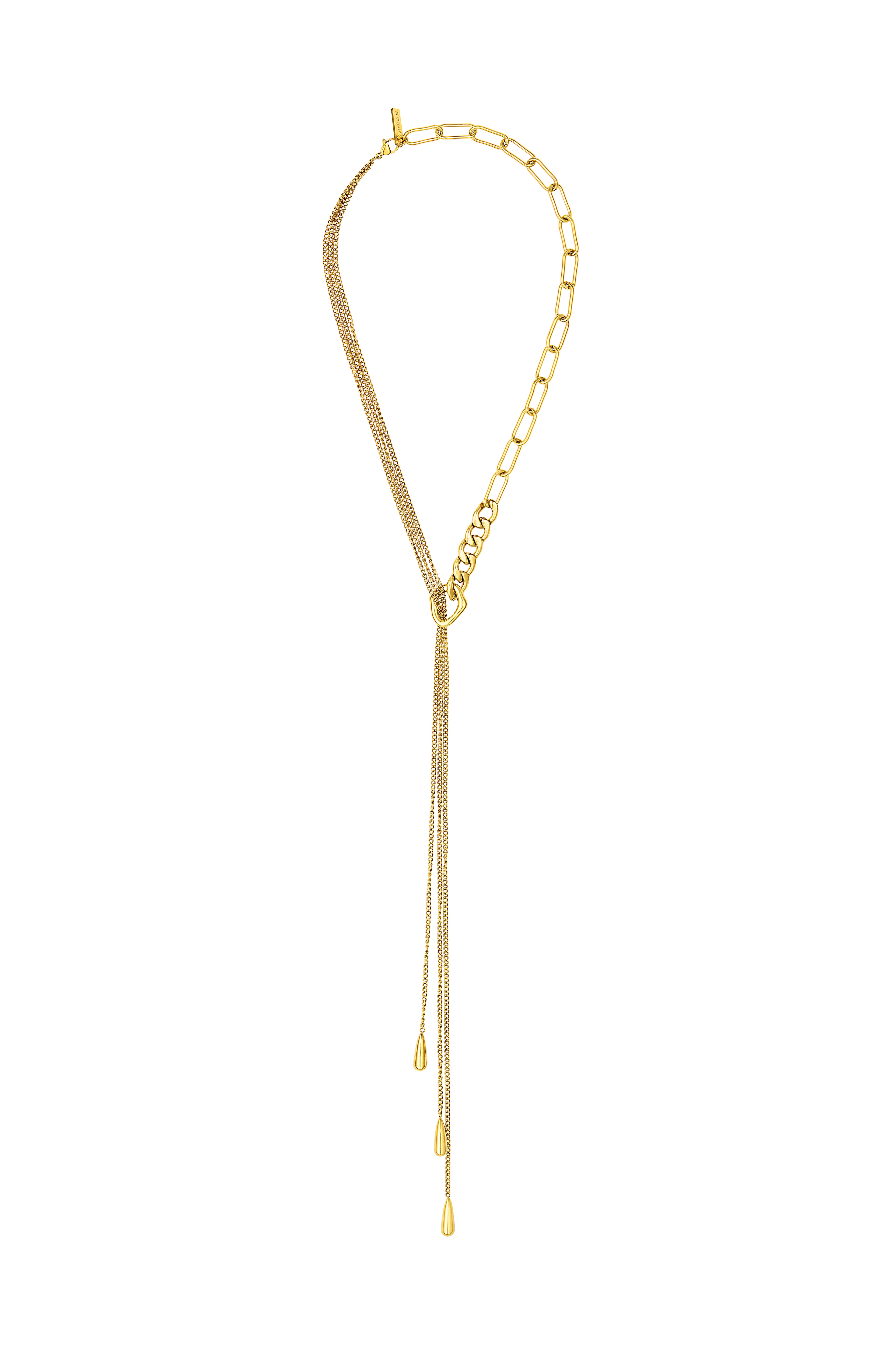 Make waves with The Noosa; a bold lariat-style necklace that doesn’t play by the rules. With a mix of chunky and slinky gold chains, this statement piece is designed to turn heads and elevate your stack game instantly.