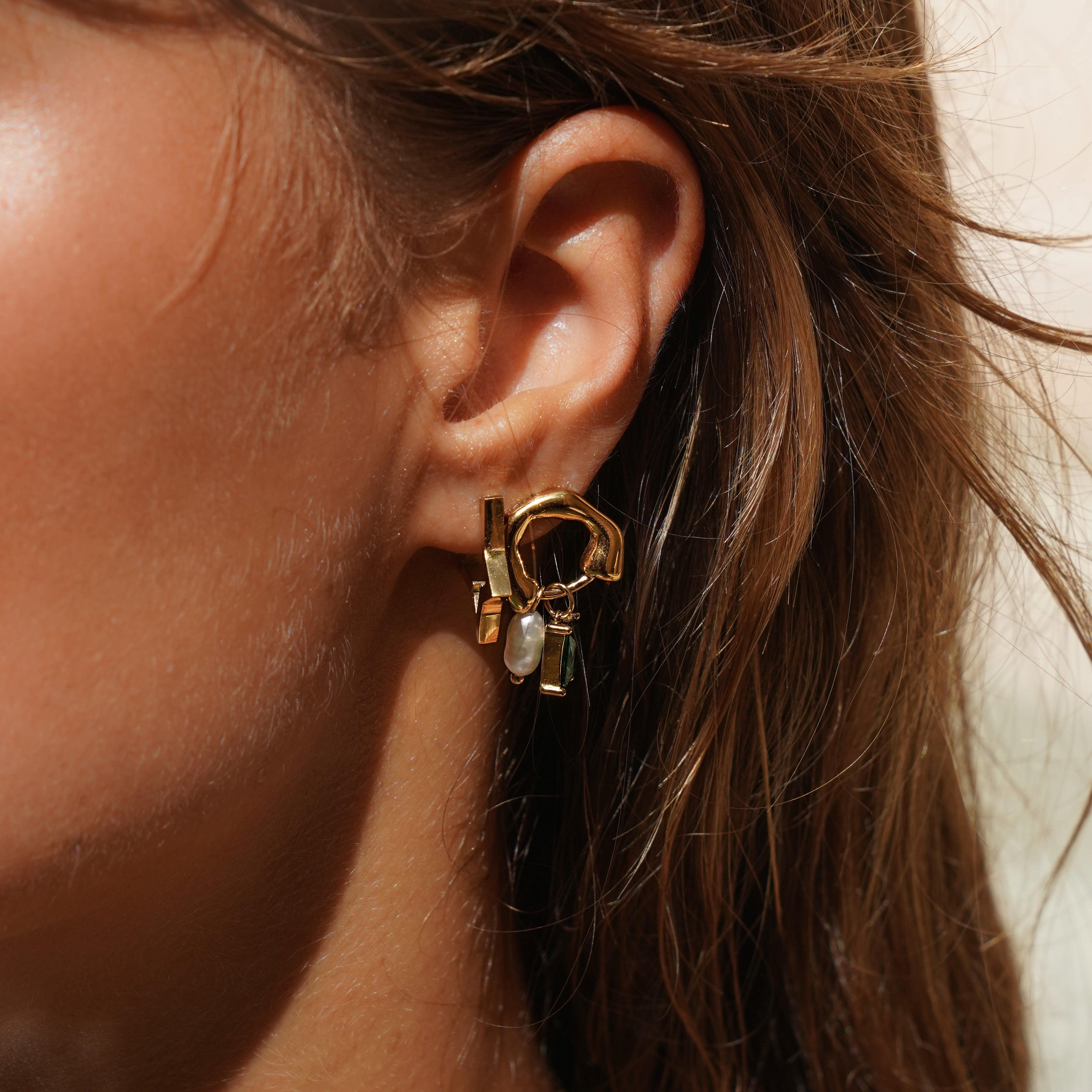 Bold, beachy, and a little bit boujee — The Bondi earrings are here to steal the spotlight. Featuring sculptural gold-tone stainless steel, glossy green glass gems, and freshwater pearls, these beauties are made to stand out. With a 25x16mm size, they’re the perfect mix of playful and polished — ready for sunset drinks, ocean views, and everything in between.