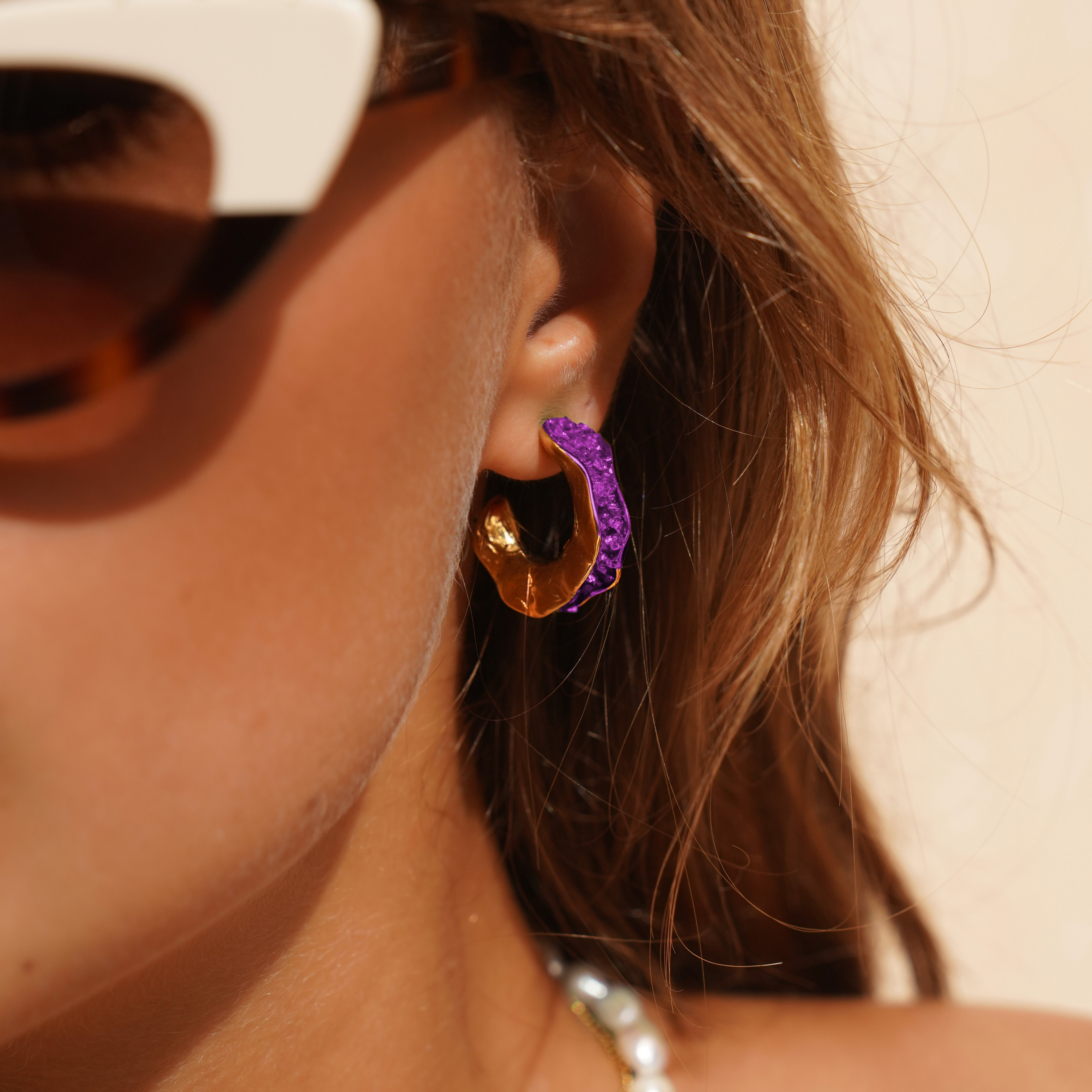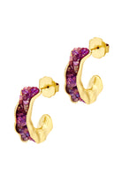 Say hello to your new fave pop of pink! The El Chiringuito hoops bring a splash of playful pink stone wrapped in a cool hammered gold finish. At 25x9mm, these stainless steel gems are just the right size to stack, shine solo, or steal the spotlight whenever you want to add a little extra fun to your look.