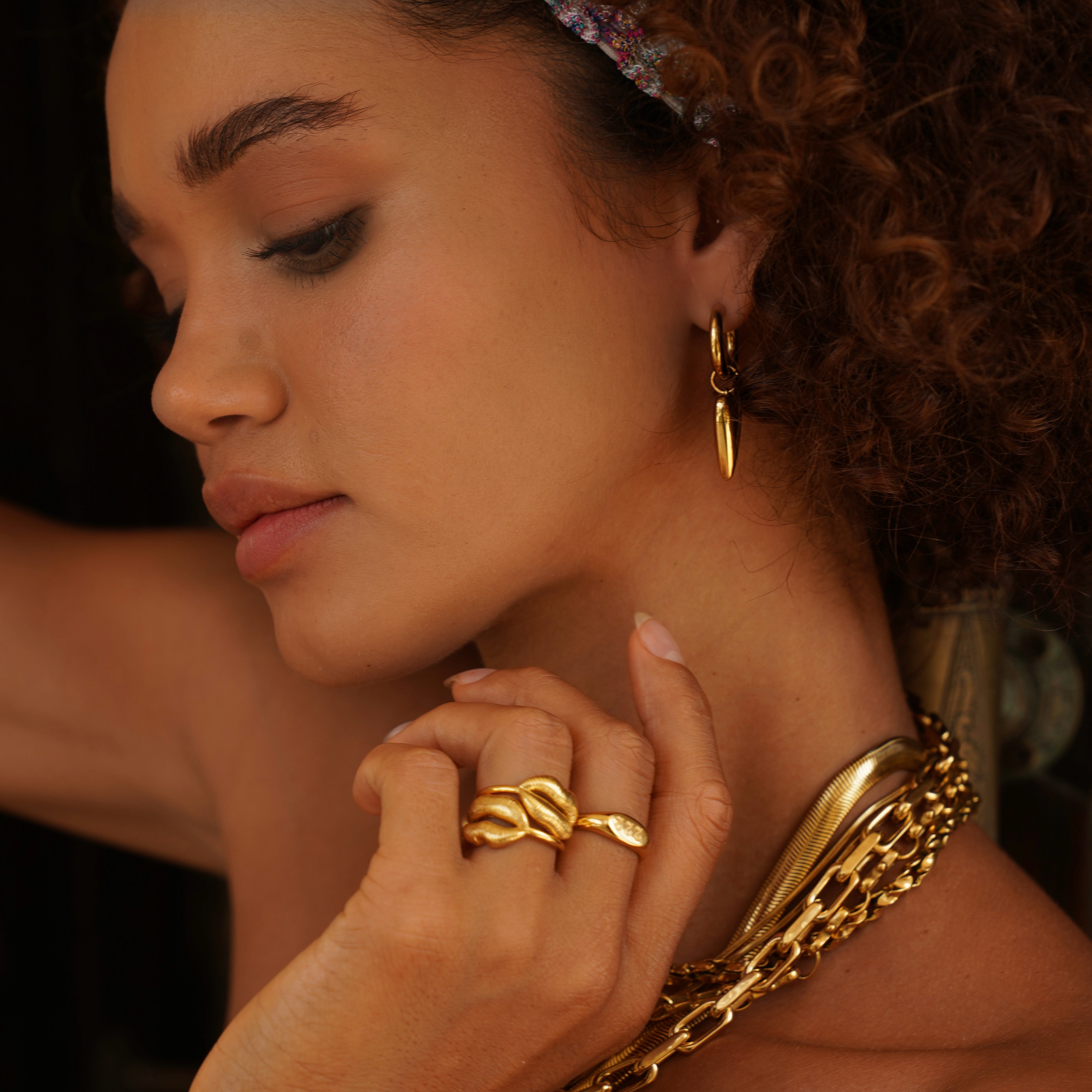 Elevate your stack with The Marina Bay Sands — bold gold hoops with a sleek, sculptural heart drop that’s all about modern glamour. These stainless steel beauties are perfectly sized at 18x40mm to catch the light and attention wherever you go. Whether you’re layering up or letting them shine solo, these earrings add that instant luxe vibe to any look.