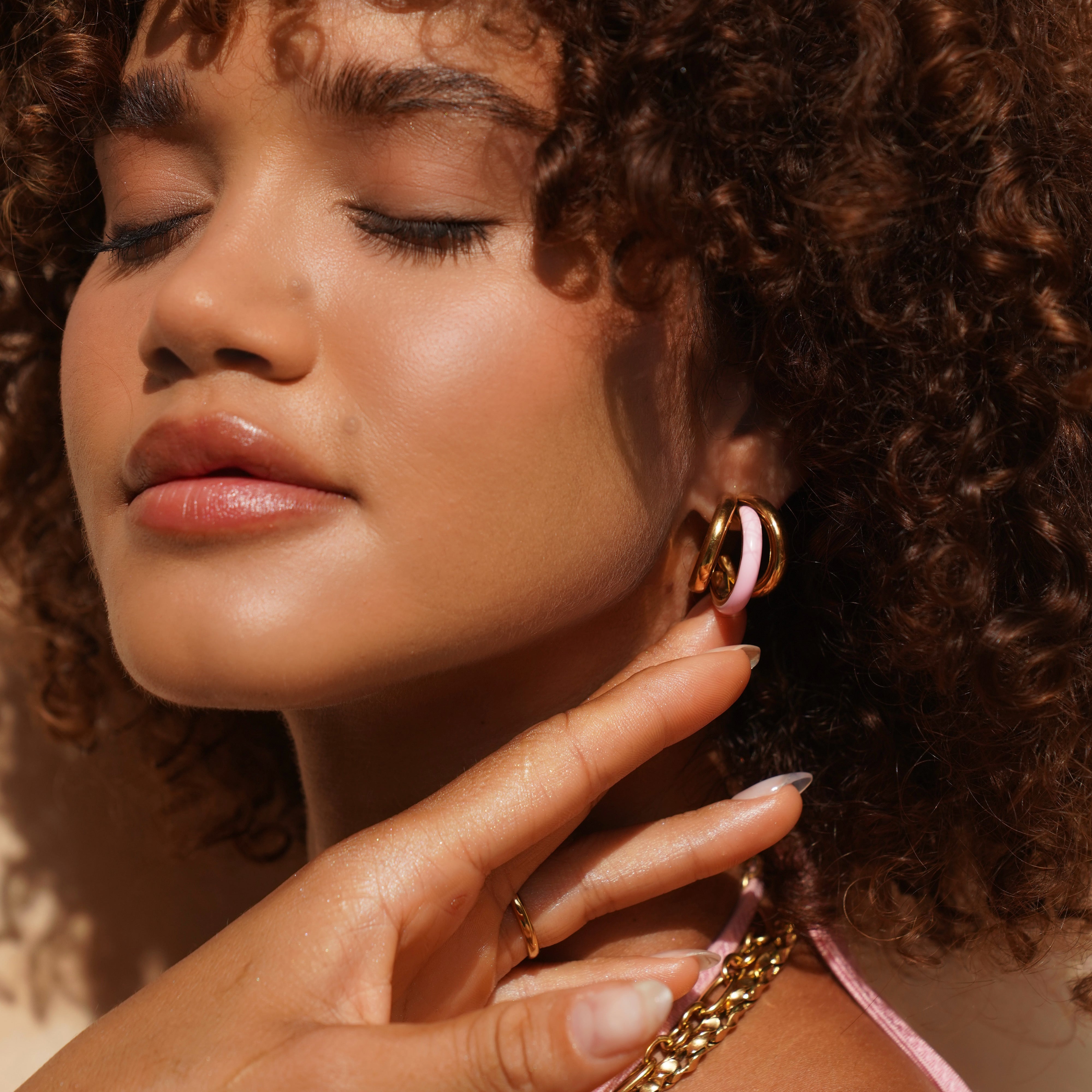 Double the fun, double the flair! The Playa De La Concha hoops mix classic gold stainless steel with a playful pop of pink enamel for a fresh, flirty vibe. Sized at a perfect 22x25mm, these earrings are light enough for all-day wear but bold enough to steal the spotlight.