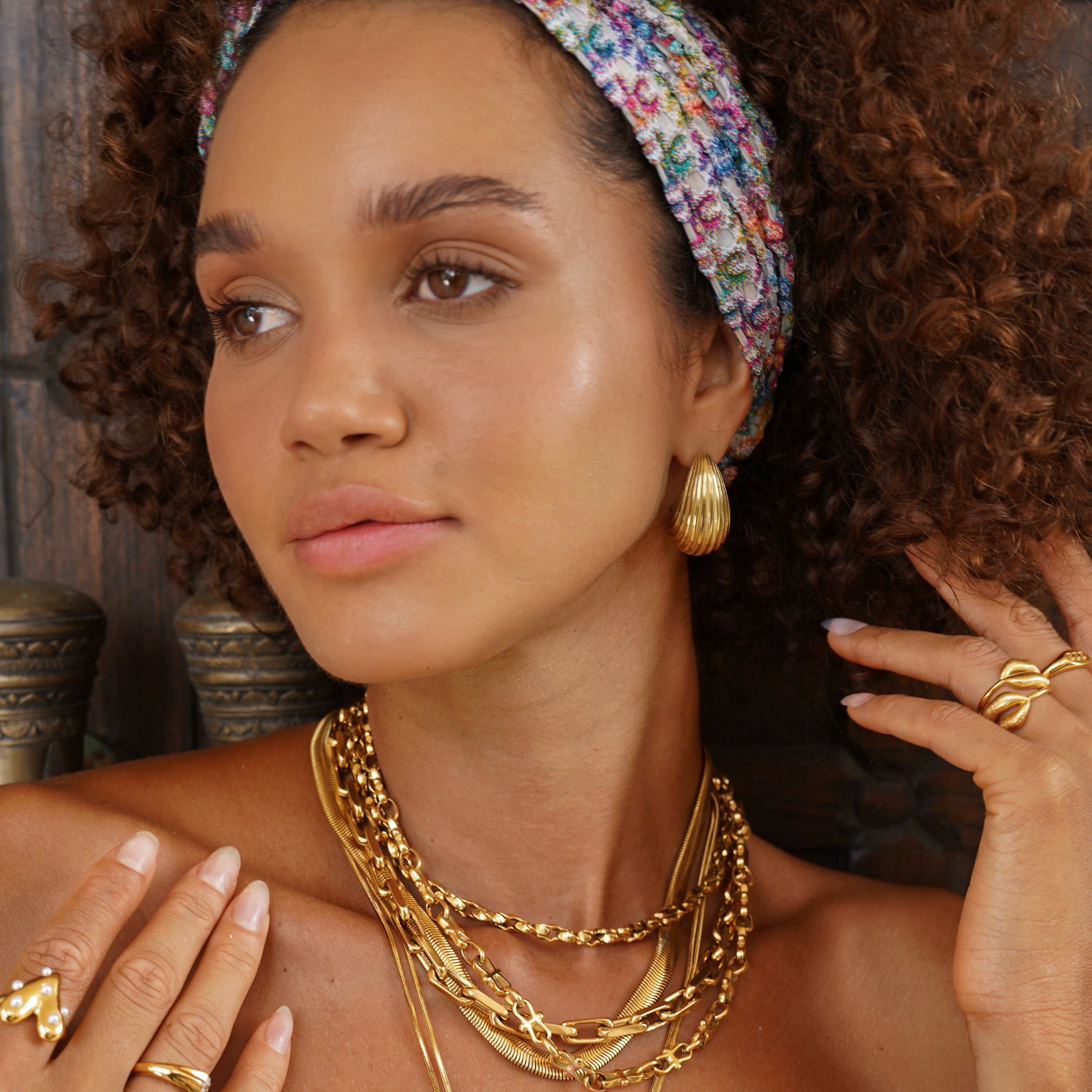 Ready to turn heads? The St. Jean earrings bring timeless elegance with a fresh twist. Their smooth, sculptural curves catch the light perfectly, giving your look a luxe glow that feels effortlessly chic. These gold-tone beauties are your go-to for adding a splash of sophistication — whether you're dressing up or keeping it cool.