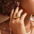 Bold but smooth, minimal yet magnetic—The St. Lucia is your modern statement ring with an edge of elegance. With its elongated dome silhouette and mirror-shine gold finish, this beauty wraps your finger like wearable sculpture.