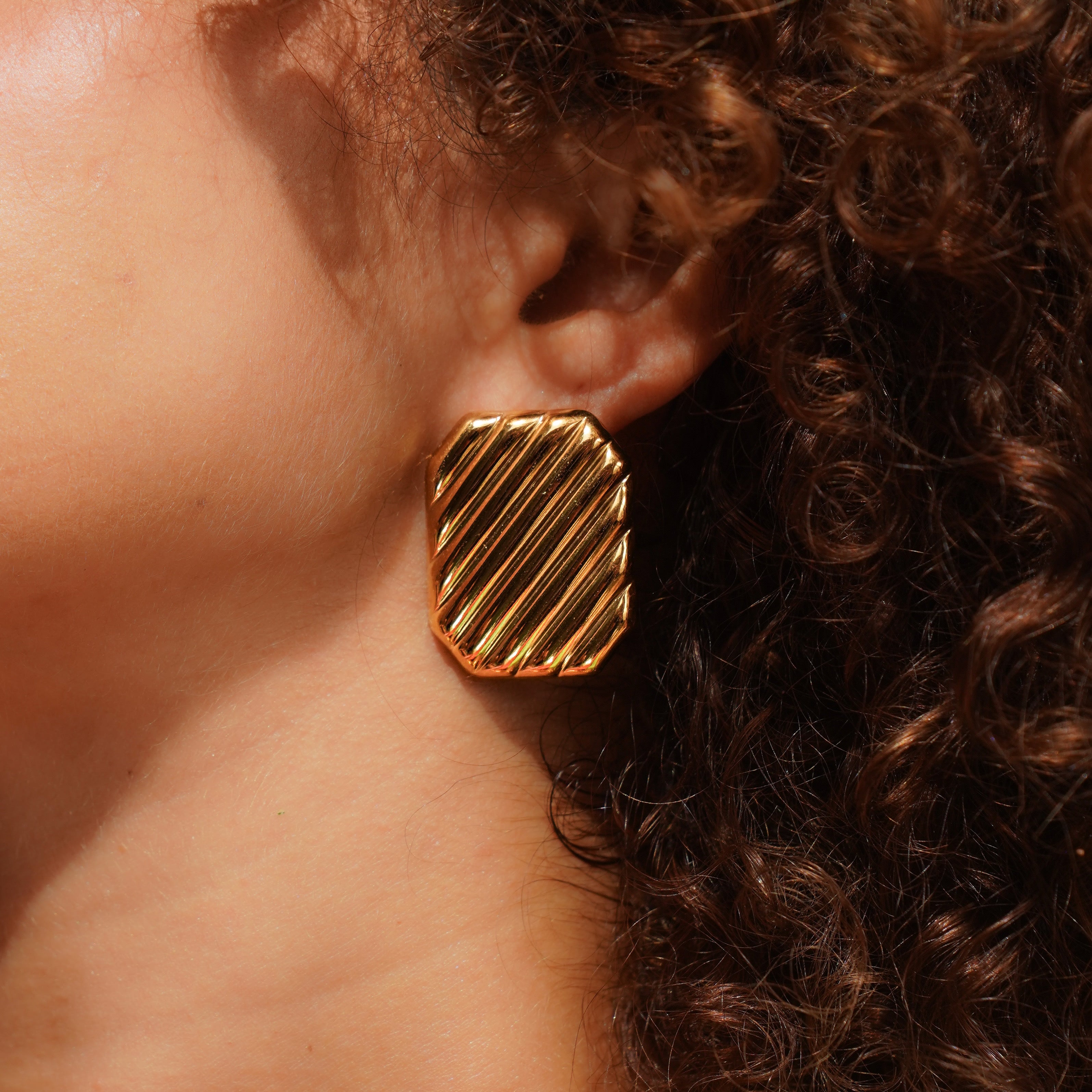 Vintage vibes, modern power. The Turks and Caicos earrings feature bold diagonal ridges and a sleek octagon shape that scream unapologetic glam. They're giving '90s runway meets beach club energy—and we’re obsessed.