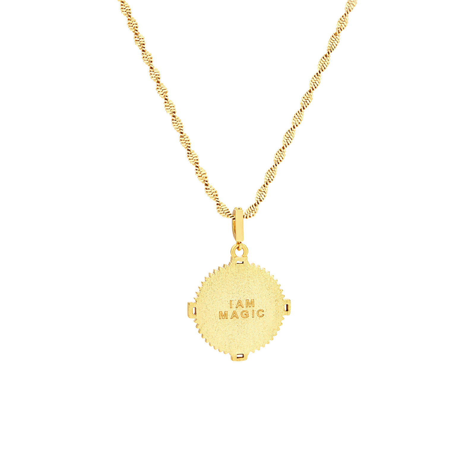 A symbol of intuition, wisdom, and unseen power. I Am Magic Necklace is designed to celebrate your inner magic and quiet strength. The pendant features a deep blue lapis centre known for its connection to intuition and truth, framed with refined gold detailing and subtle AAA CZ accents for a soft, celestial sparkle.