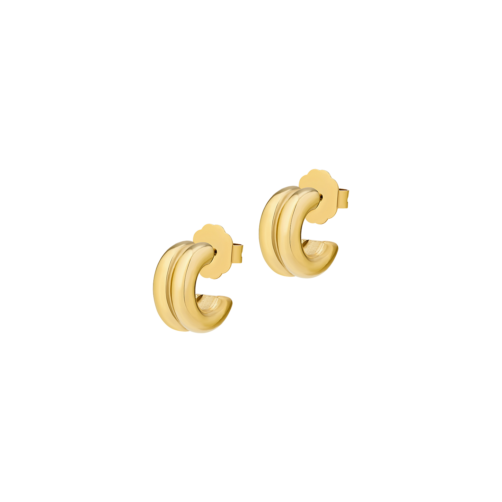 Sculptural, bold, and effortlessly cool. The Praya Earrings feature smooth curved hoops that add instant impact to your everyday ear stack. Their glossy gold finish makes them an easy statement piece that works with any look.