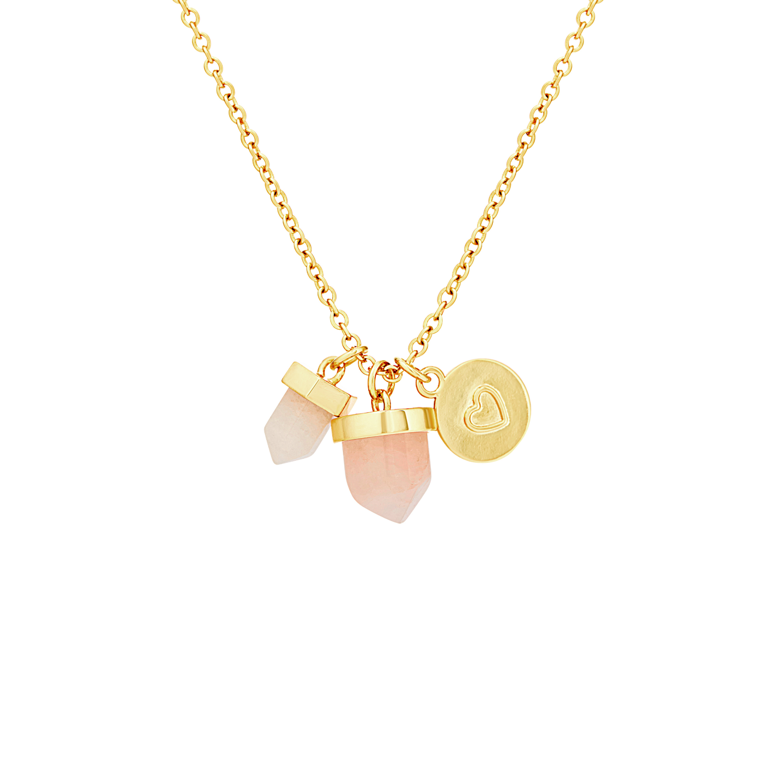 The longer chain length allows the charms to sit beautifully on the chest, creating movement and depth with every step. The natural rose quartz adds a gentle, calming energy, while the mix of shapes and finishes gives the piece a modern talisman feel.