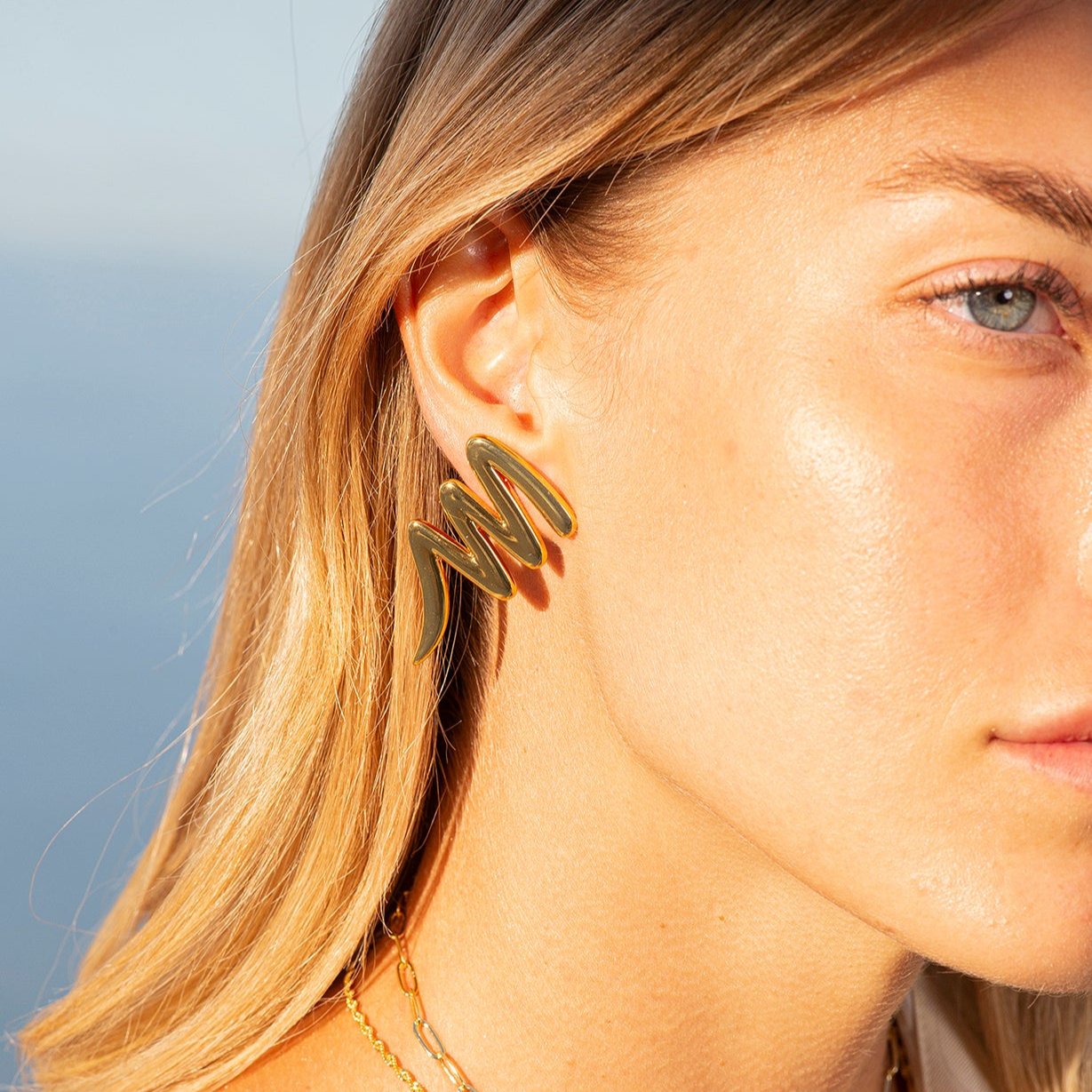 The striking angles of 'The Evangelista' earrings will instantly draw you in. A statement pair for any occasion, the golden zig-zags will bring life to your outfit and leave all eyes on you. Wear with our 'Lucky Star' and 'Sun Goddess' necklaces for a truly outstanding Celeste Starre trio. After all, life is your catwalk!